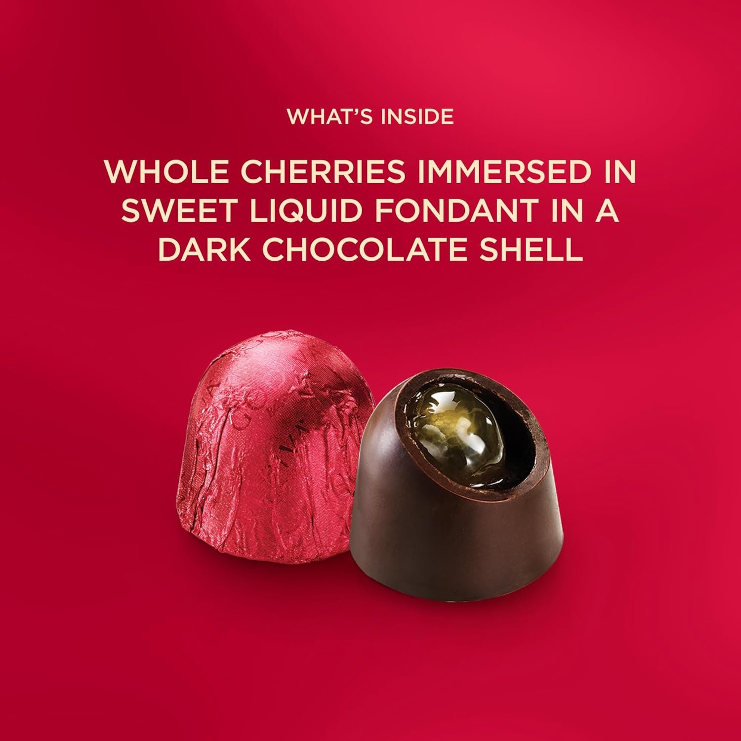Romantic Chocolate Indulgence: Savor 24 decadent cherry cordials, where smooth Godiva dark chocolate envelops a luscious cherry center, creating an indulgent treat perfect for celebrating love and romance.