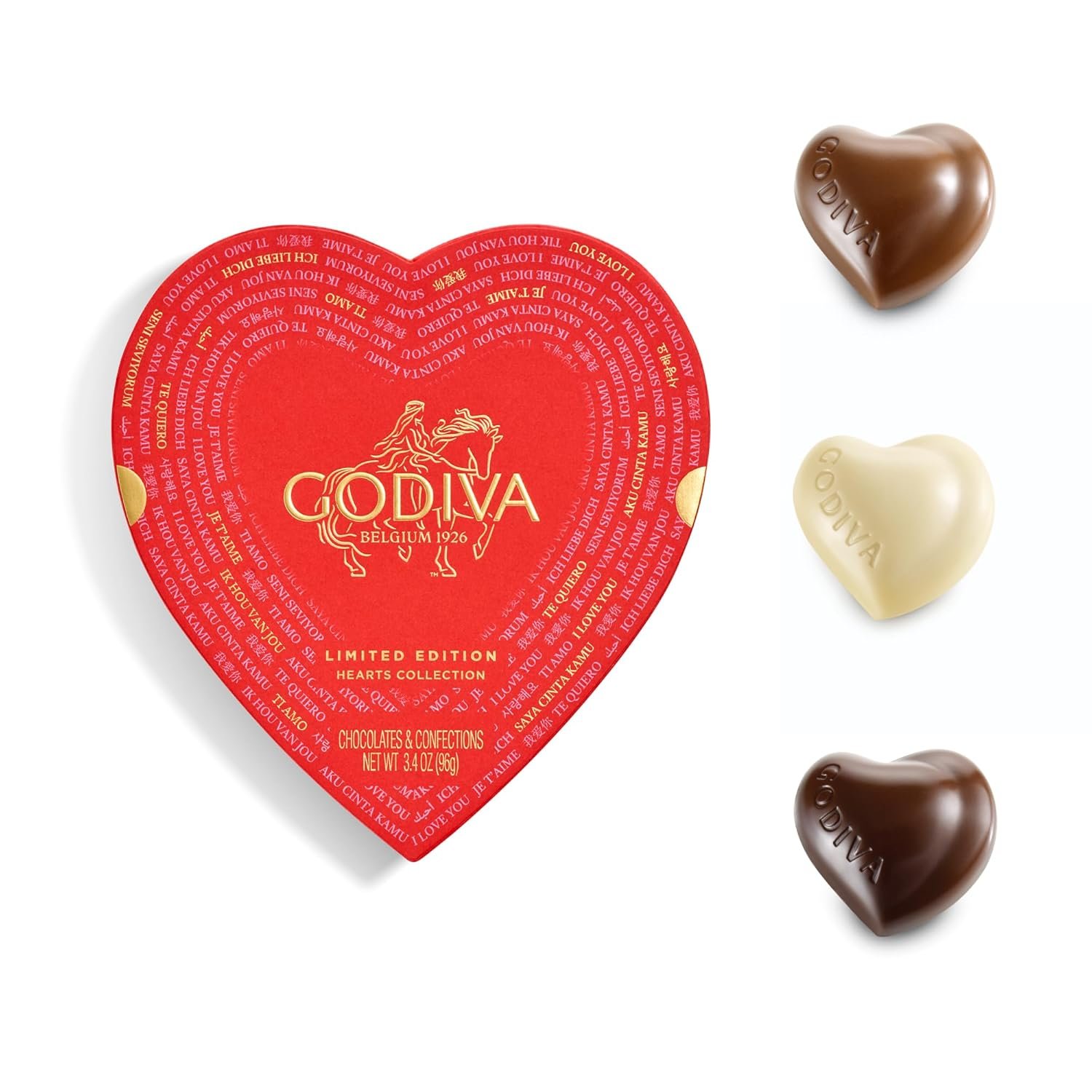 Celebrate Valentine’s Day, Galentine’s Day, and meaningful moments of love with the Godiva Gold Collection Heart Chocolate Gift Box. This elegant 9-piece assortment showcases heart-shaped Belgian chocolate pralinés crafted with care and artistry, offering a luxurious way to express affection to romantic partners, close friends, and cherished loved ones alike. Inside the stunning pink heart-shaped keepsake box, you’ll find four signature flavors from Godiva’s iconic Gold Collection. Indulge in the bold intensity of the Dark Chocolate Ganache Sweetheart made with 70% cacao, the classic Milk Chocolate Praliné Sweetheart with smooth hazelnut filling, the enchanting White Chocolate Praliné Sweetheart, and the Strawberry Ganache Sweetheart wrapped in a delicate pink shell for a bright, fruity finish. Each piece is thoughtfully crafted to deliver a balanced, melt-in-your-mouth experience. The box itself is a celebration of love across cultures, featuring gold accents and “I Love You” written in multiple languages from around the globe. Its eye-catching design makes it a beautiful Valentine’s display, a heartfelt gift for her, or an elegant gift for wife that feels both romantic and modern. Whether shared during an intimate Valentine’s moment, exchanged among friends for Galentine’s Day, or given as a thoughtful token of appreciation, this Gold Collection Heart Gift Box turns every bite into a meaningful celebration. Since 1926, Godiva has honored its Belgian heritage by crafting chocolates that blend artistry, flavor, and emotion, making this heart-shaped gift a timeless symbol of love, friendship, and indulgence.