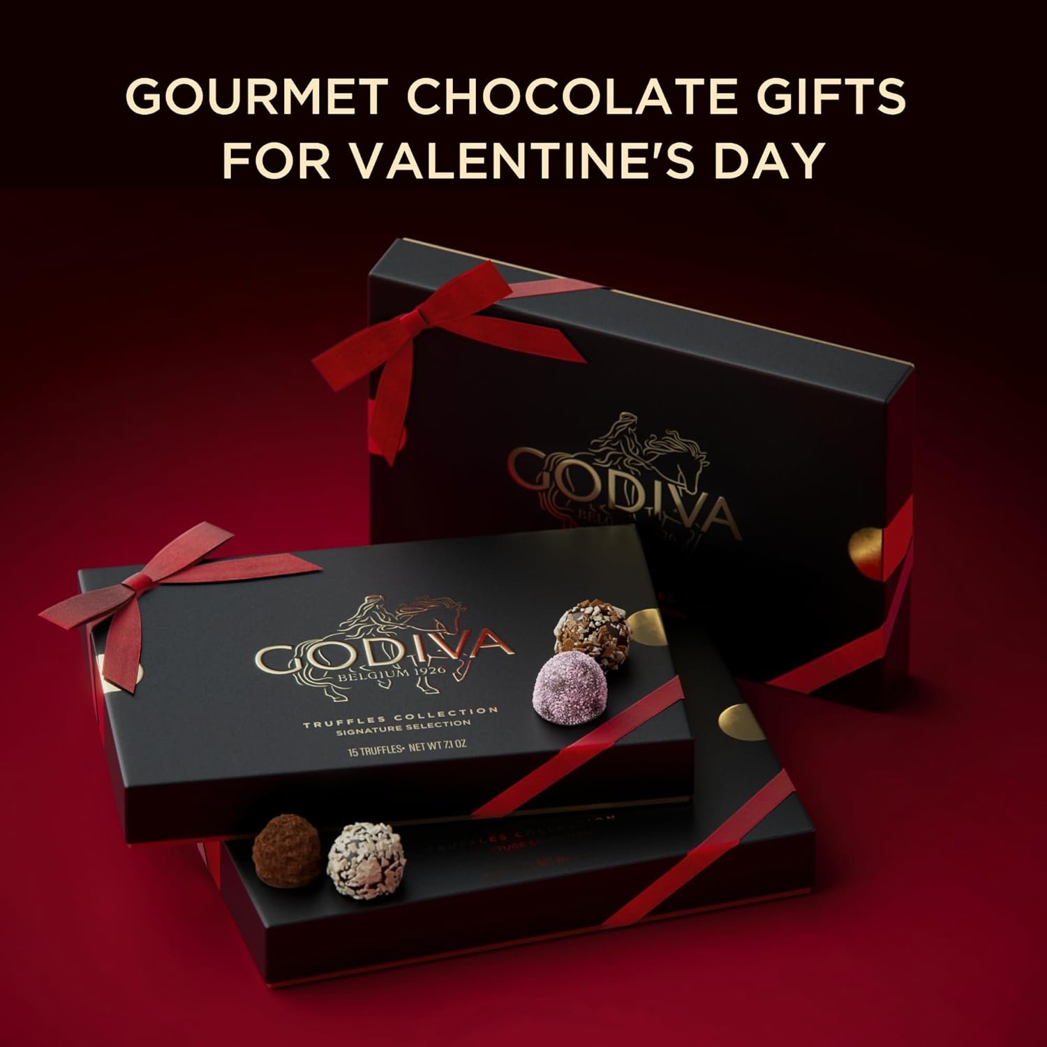 Romantic Belgian Truffle Experience: Celebrate love with the Godiva Signature Truffles Collection. 15 decadent Belgian chocolates featuring beloved classics and inspired new recipes, each crafted with silky ganache centers and an indulgent, romantic appeal.