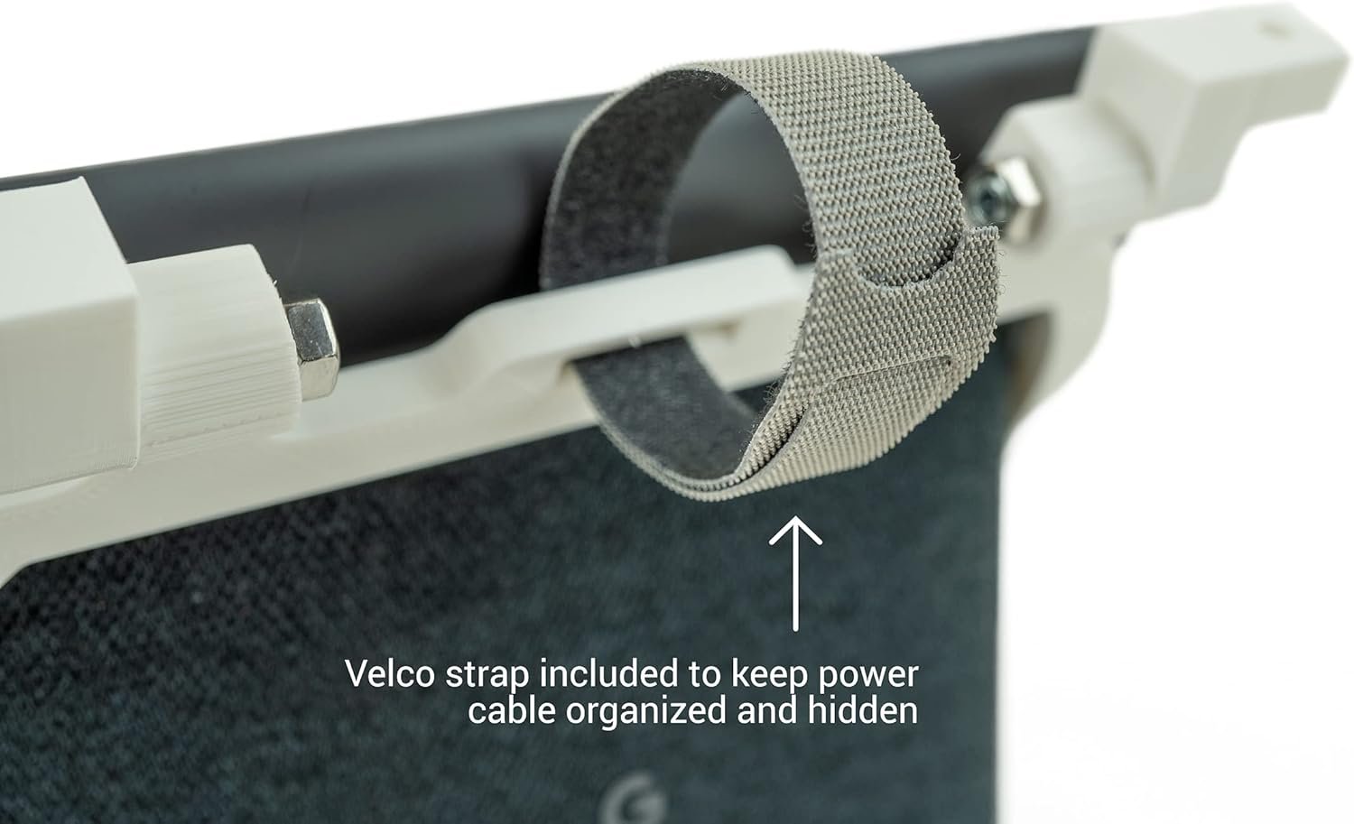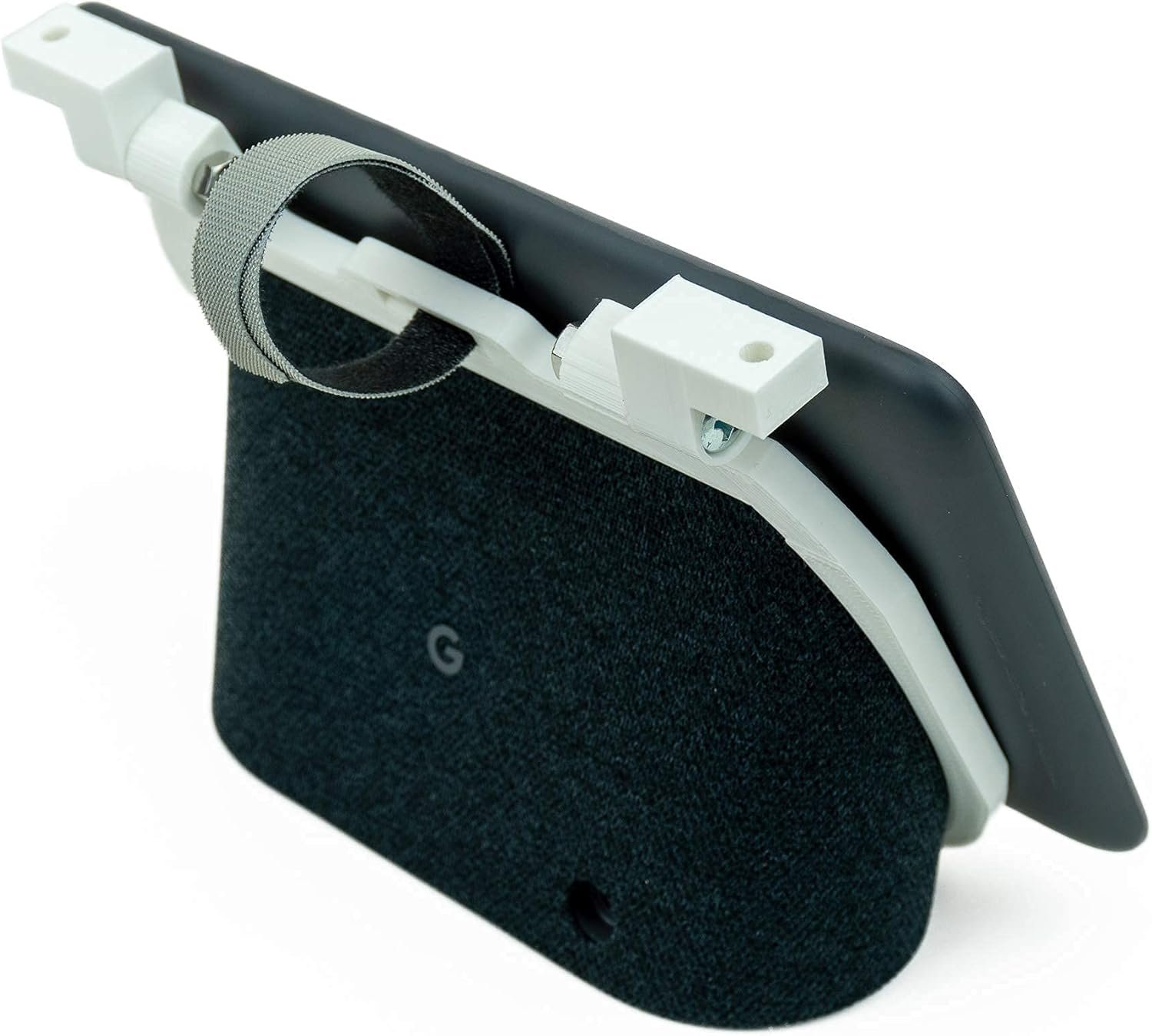 If you want to keep your kitchen organized and counters clear, while ensuring you still have easy access to your Nest Hub Home, this mount is exactly what you need. Simply screw this mount in to the underside of your cabinets and slip the Google Nest Hub Home into the mount – gravity will hold the unit in place at the proper angle for easy eye-level viewing. Also included is a velcro cable wrap so you can bundle the extra power cable and hide it from sight (color of velcro strap may vary based on availability). Volume buttons are accessible while the unit is mounted. This item is 3D printed from high-quality PLA plastic for strength and durability. Google Nest Hub Under Cabinet Hanger Bracket design by piercetis, licensed under the Creative Commons – Attribution license (https://www.thingiverse.com/thing:3307653).