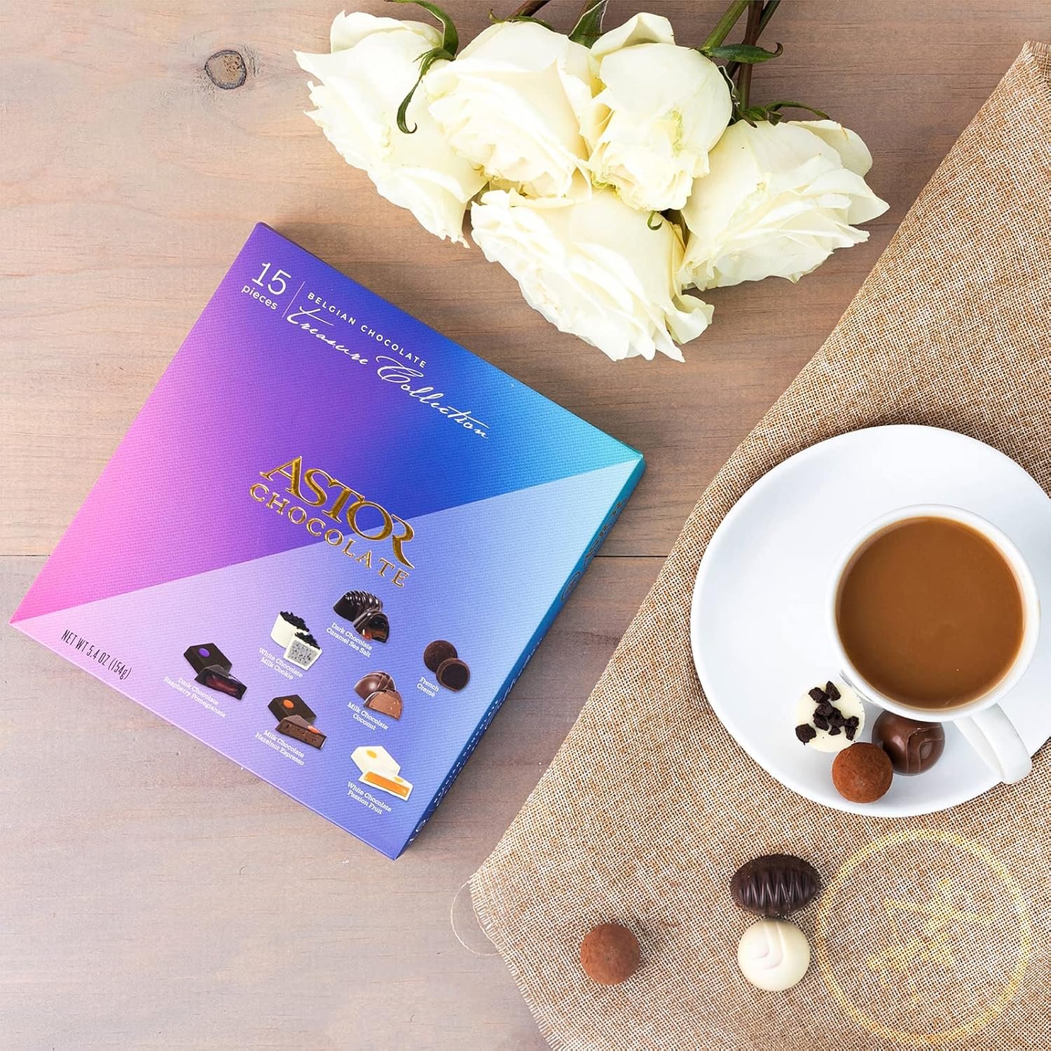 Astor Chocolate 15pc Belgian Treasure Collection Truffle box is a perfect gift with its’ beautiful and modern design deliciously decadent truffle flavors – this gift box has something for everyone. Dark chocolate Thanksgiving candy variety pack for adults is a great Thanksgiving gift idea and corporate gift idea.