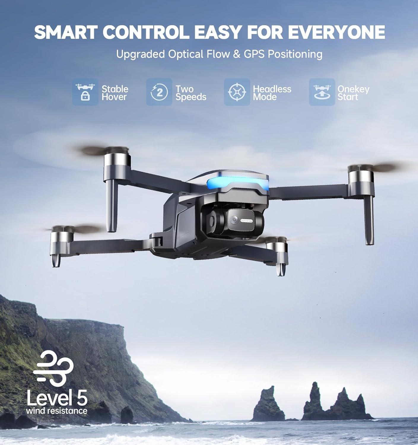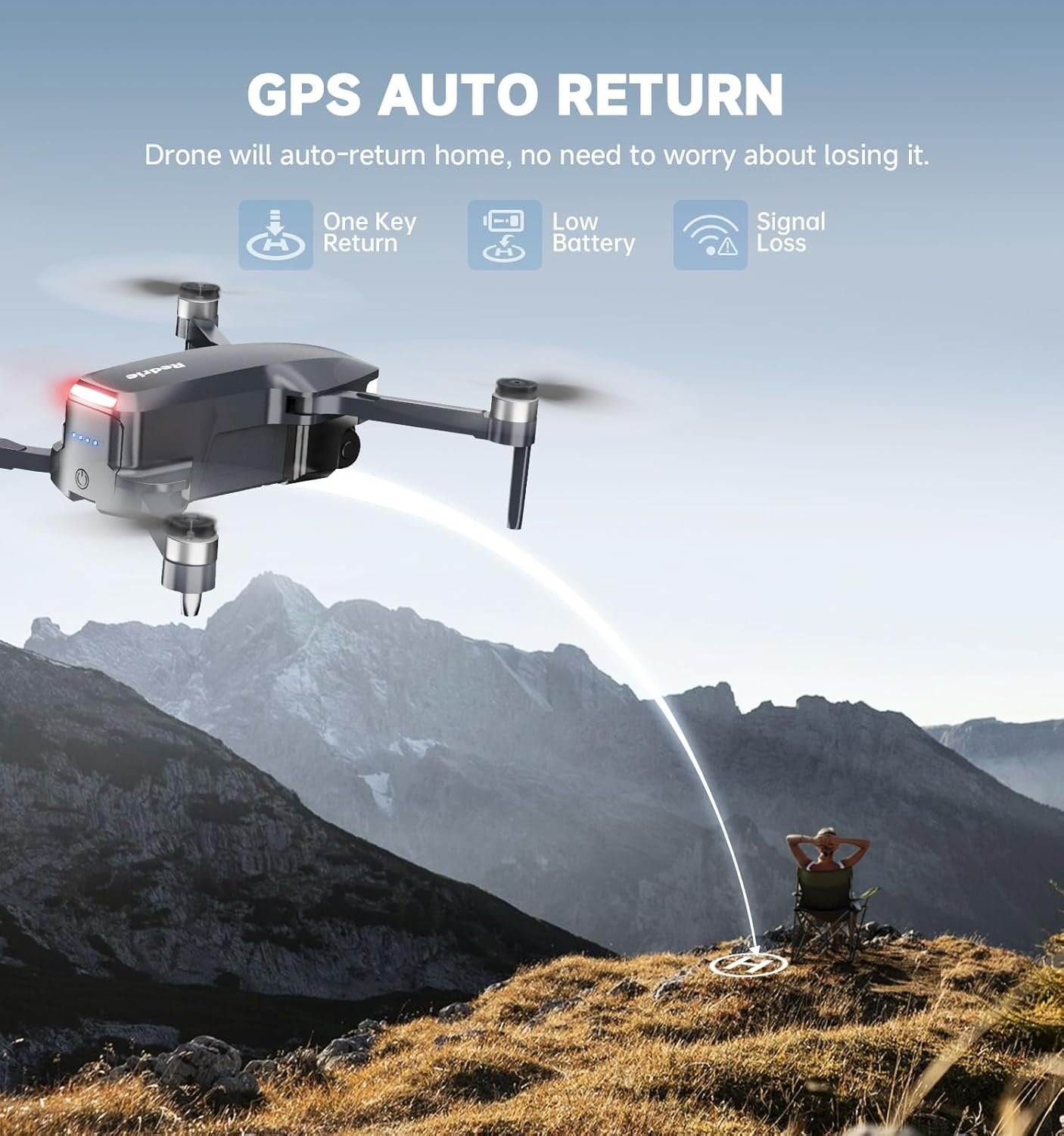 [ Versatile Smart Flight Modes ] Equipped with a high-precision GPS module, it automatically returns home when losing signal, exceeding flight range, or running low on battery. Supports GPS Follow, Route Planning, and Fly Around—perfect for beginners and hobbyists, adding fun and versatility to your aerial shots.