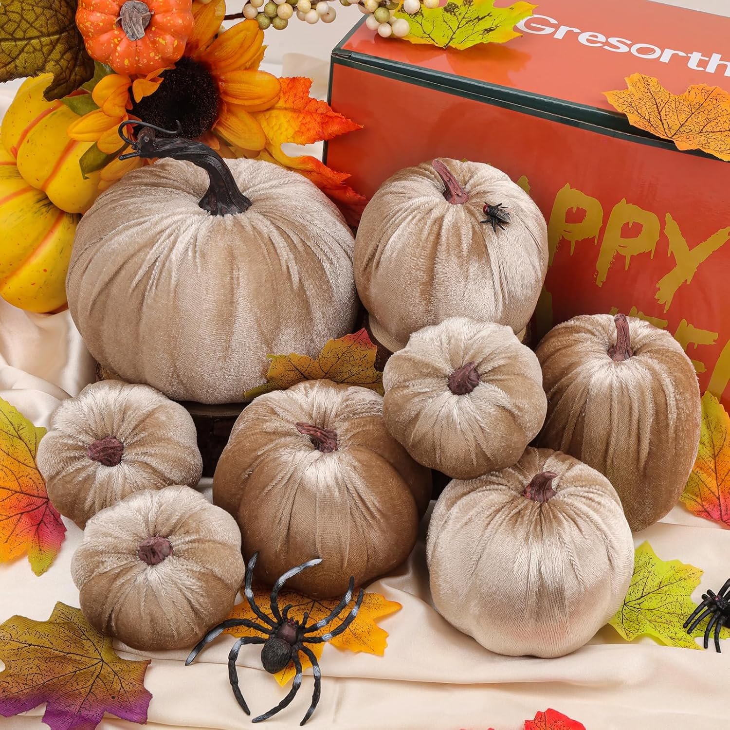 Be the first to review “Gresorth 8pcs Assorted Size Fake Handmade Champagne Velvet Pumpkins Artificial Fall Harvest Halloween Decoration for Home Kitchen Farmhouse Thanksgiving Wedding Festival”