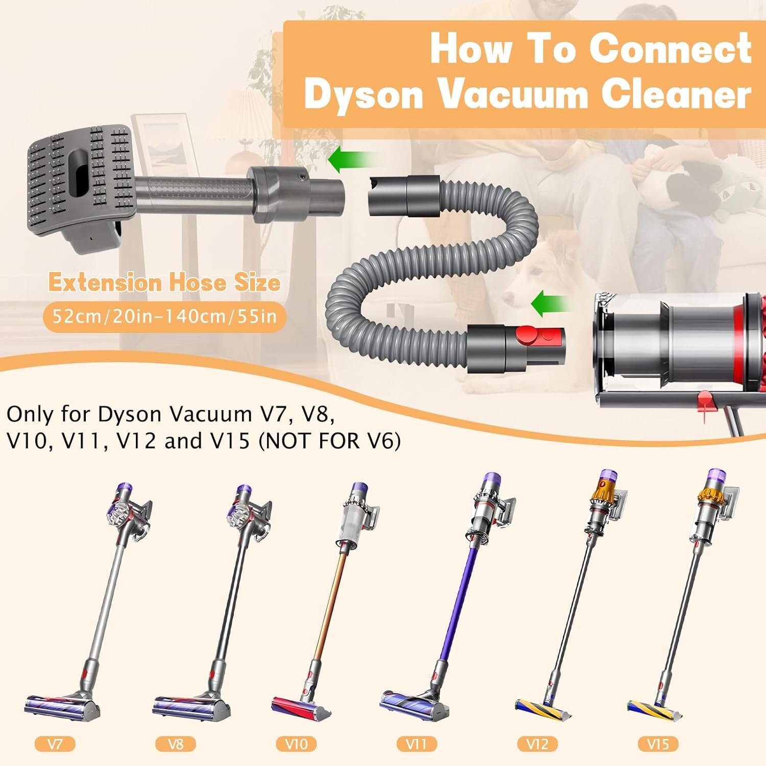 [Compatibility]—For Dog Groom brush perfectly fits compatible with Dyson V7 V8 V10 V11 V15 Vacuum Cleaner, with quick release converter adapter and extension hose [Practical cleaning tools]—The upgraded version comb tooth adopts the design of round needle with big head,Simply connect the hose seamlessly to your vacuum cleaner for cleaning experience [Retractable Hose&Trigger Lock]—Flexible retractable hose, is easy to stretch .Trigger Lock addition ensures that accessories remain firmly in place throughout the grooming process, allowing you to groom without the need to continuously press the vacuum [Easy to Install]—This replacement comes includd 1*dog grooming tool, with extended vacuum hose & triggerlock. To avoid any inconvenience or potential compatibility issues,Please check the model number before purchasing [Note]— Please confirm that your product model is compatible with this pet brush set