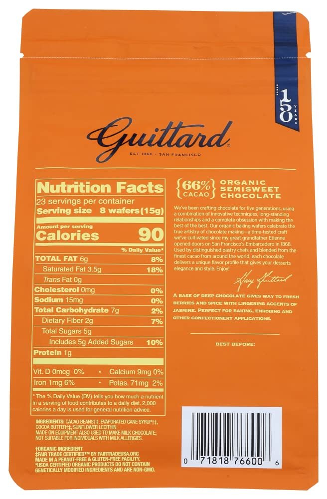 Guittard, Organic 66% Chocolate Baking Wafers, 12 Ounce