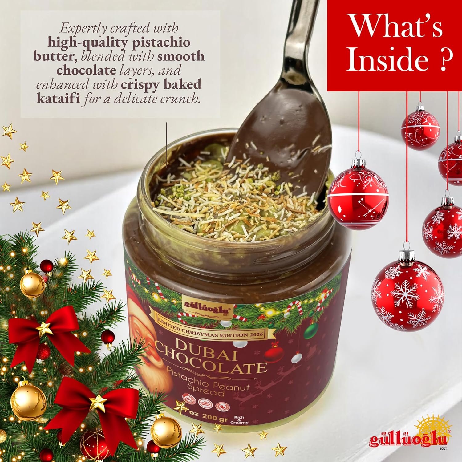 ⭐ Crafted with Gulluoglu’s Signature Quality – Combining a century of artisan dessert tradition with the joy of Christmas, Gulluoglu delivers a premium, festive spread that stands out with its elegant presentation, rich flavor, and seasonal charm.