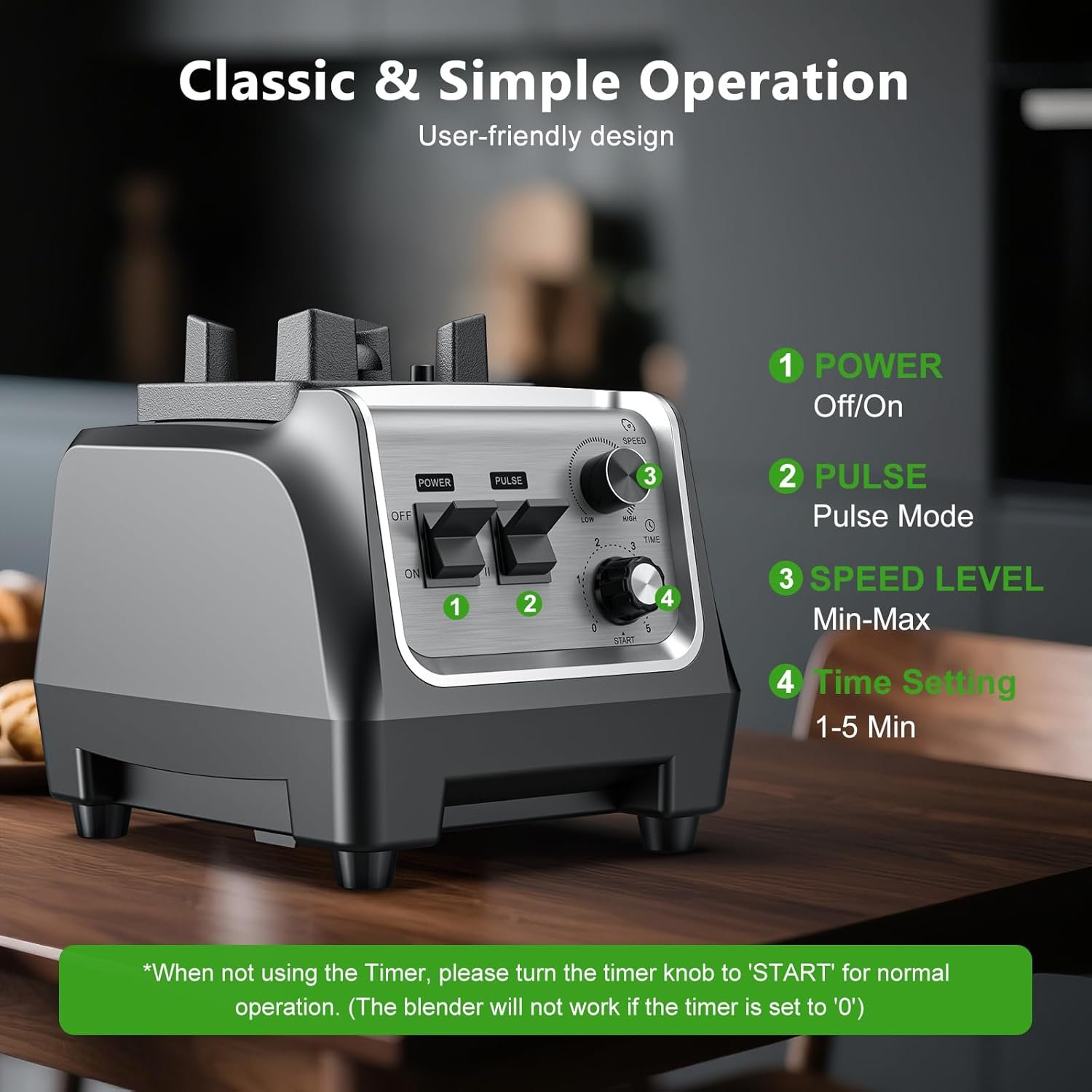 Adjustable Speed with Timer & Pulse:Take command of your textures with a smooth speed dial, a 5-minute timer for hands-free operation, and a pulse function. The smoothie maker allows you to customize the blending process for tasks from creating chunky salsas to silky purées, helping you achieve a wide range of results for cold recipes