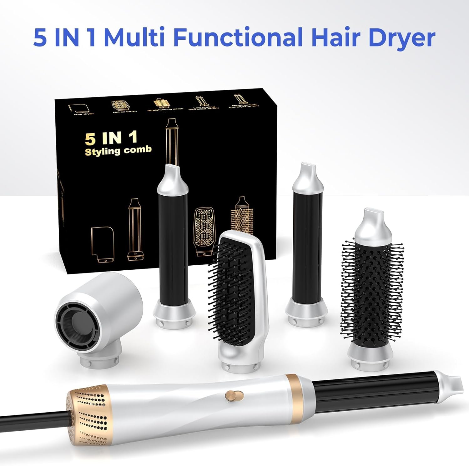 5 in 1 Hair Dryer Brush Set: The air styler comes with a variety of attachments for easy blow drying, straightening, curling, volumizing and scalp massage.Hair dryer brush blow dryer 2 in 1, this magic styler creates different hairstyles for different lengths of hair