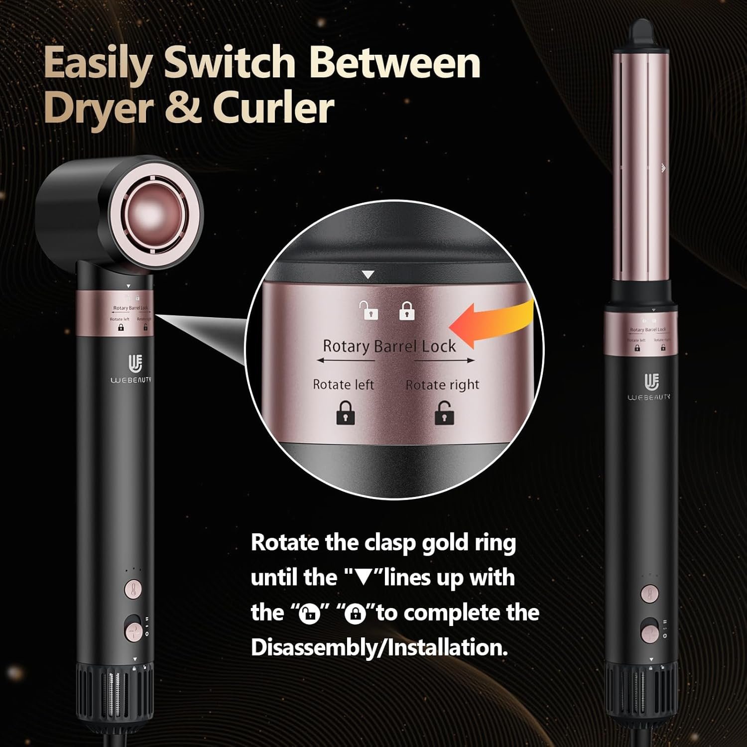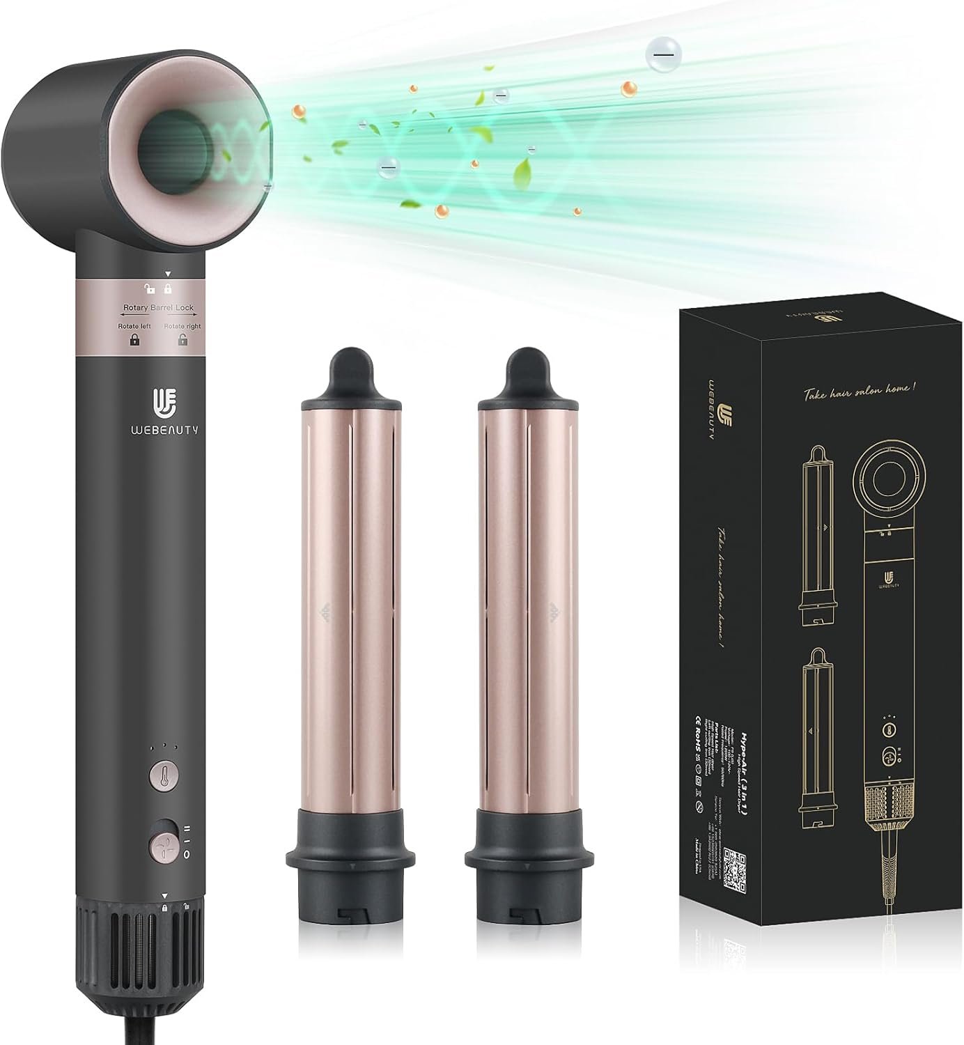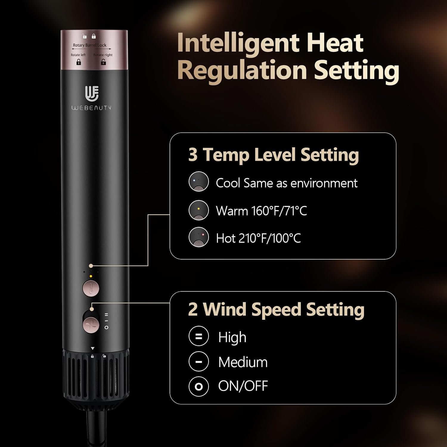 HIGH-SPEED BRUSHLESS MOTOR – FAST DRYING: Webeauty 3-in-1 hot air styler uses a 110,000 RPM high-speed brushless motor with 1200W power for ultra-fast drying. The negative ion blow dryer reduces frizz and static, leaving hair smoother, shinier, and healthier. A must-have lightweight hair dryer for women