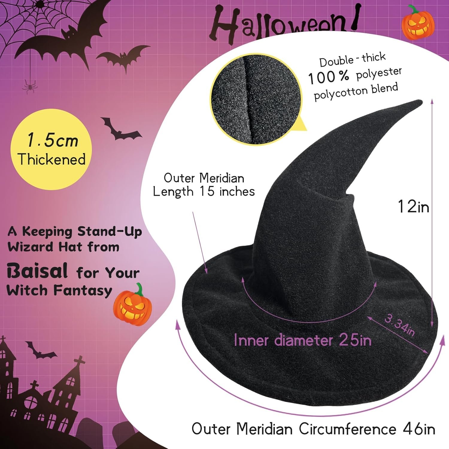 Black Pointy Hat for Wackiest Cosplay Costume, Compatible With Any Face Shape