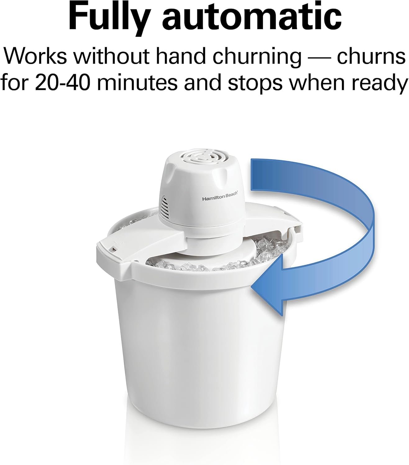 FULLY AUTOMATIC — WORKS WITHOUT HAND CHURNING: No more waiting all day when you’re craving a homemade frozen treat. This ice cream machine makes ice cream fast and works with a simple on/off switch. No hand churning needed.