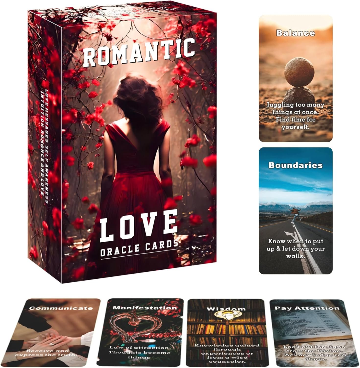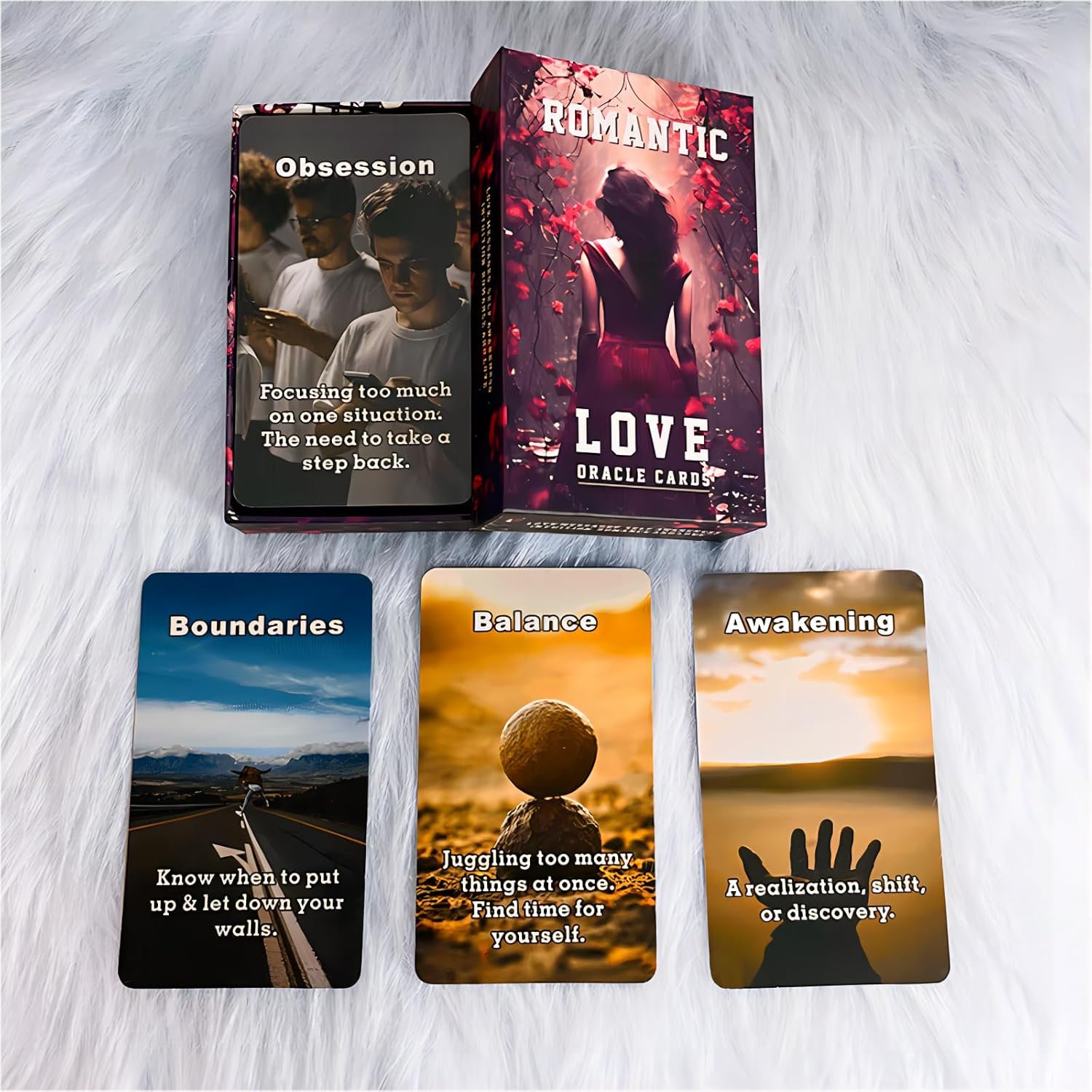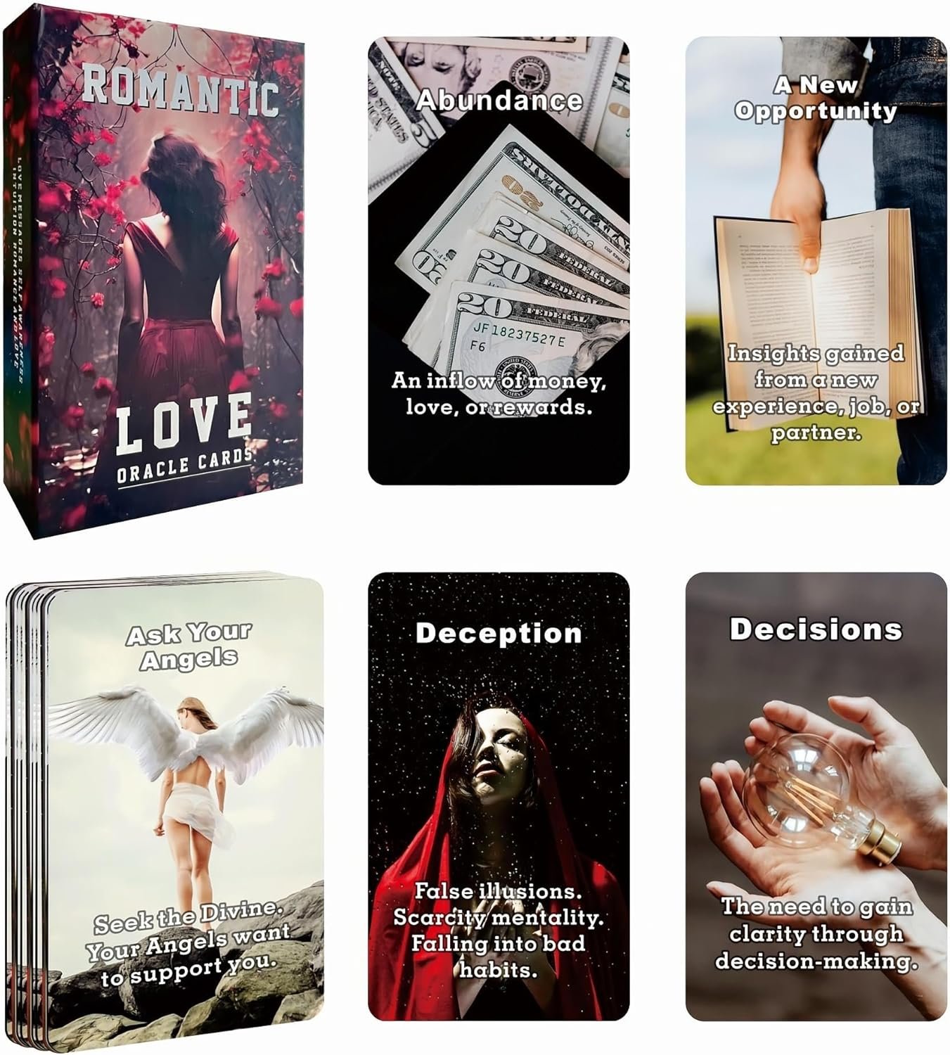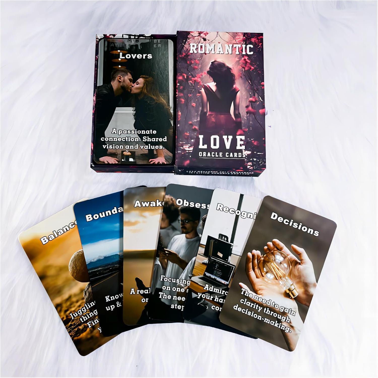 【Romantic Love Oracle Cards】This edgy custom-made Indy romance deck contains 54 cards poker-sized (2.75″ x 4.72″) cards pertaining to all aspects of a love relationship.Beautiful & Inspiring Images to connect you with the vibration of REAL Love. Use for energy readings, love predictions & confirmation.