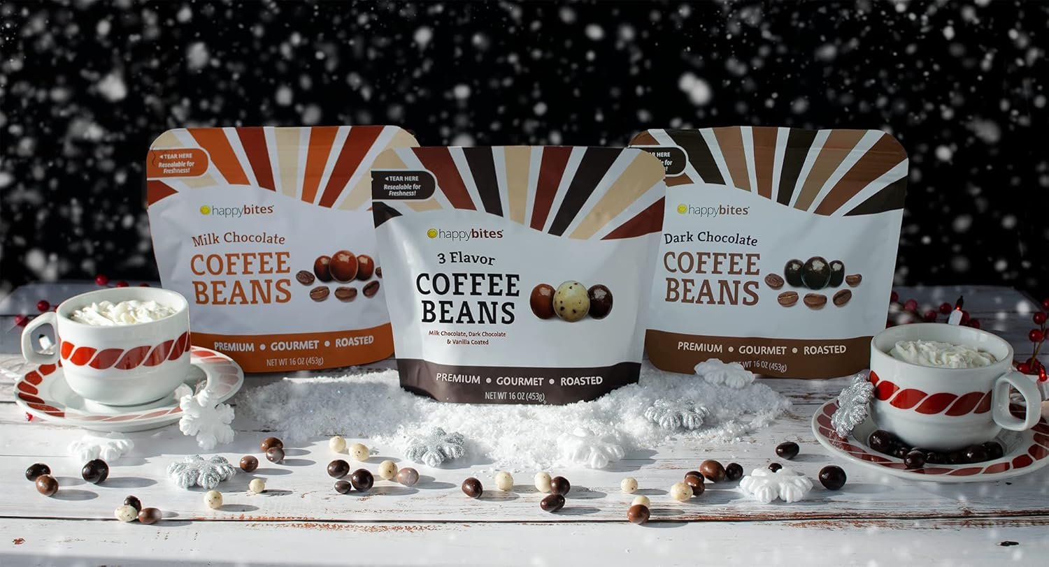 Delicious Happy Bites 3 Flavor Covered Coffee Beans (16 oz / 1 bag)