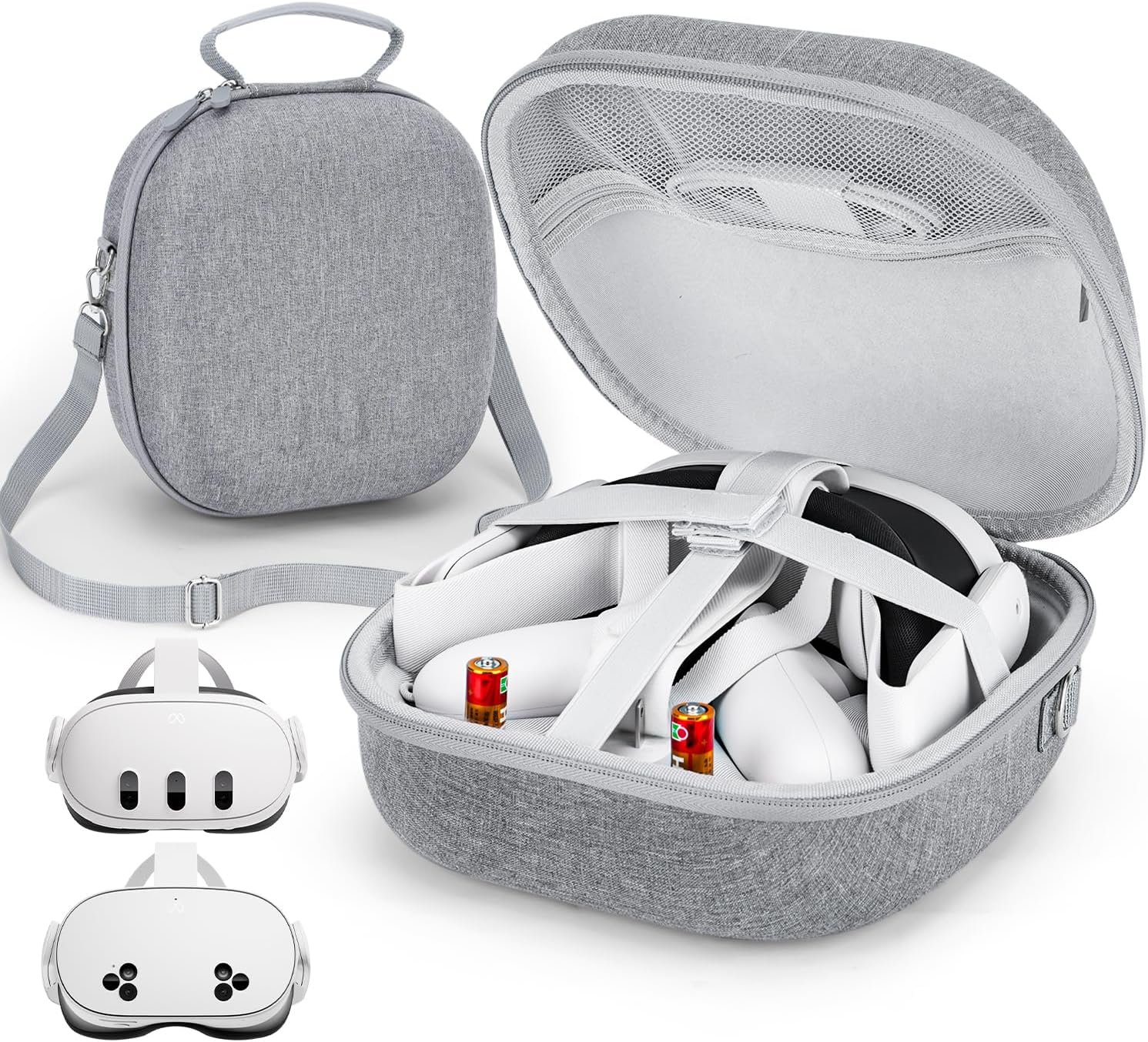 【Wide Compatibility】This large carrying bag is specifically designed for the Meta Quest 3S/Quest 3 VR headsets. It is compatible with various third-party headbands and can also accommodate the Elite Strap, touch controllers, chargers, adapters, cables, and other accessories (not suitable for the battery headband of BOBOVR).