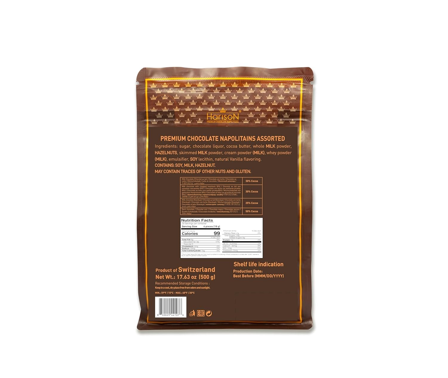 Switzerland-Made Chocolate Craftsmanship – Each piece reflects the elegance and smooth texture associated with authentic Swiss chocolate artistry.