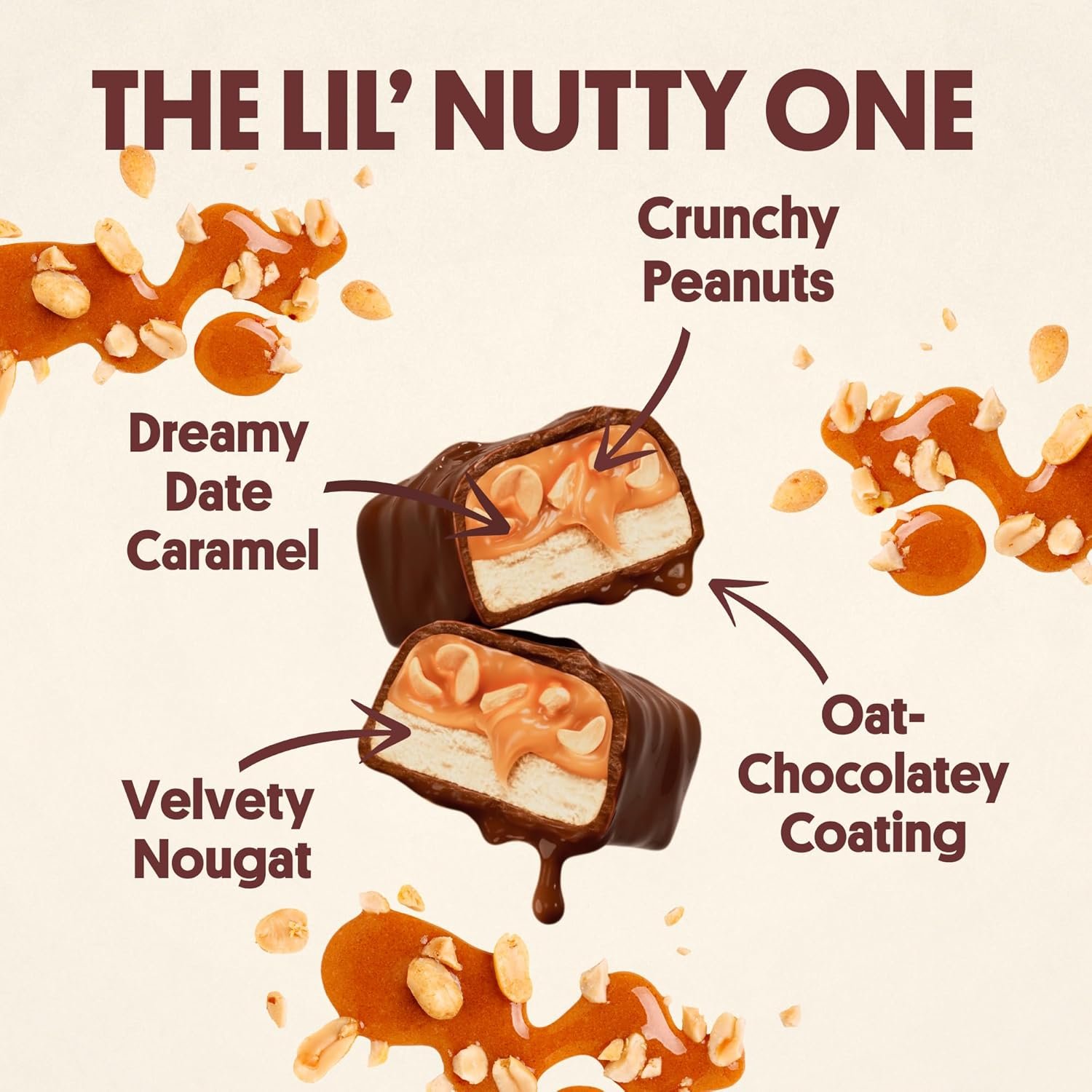 FILL YOUR EASTER BASKET WITH GUT-LOVIN’ CANDY: A rich oat milk chocolate style coating, dreamy date caramel, and crunchy peanuts for a candy bar that’ll satisfy your sweet tooth, without the junk!
