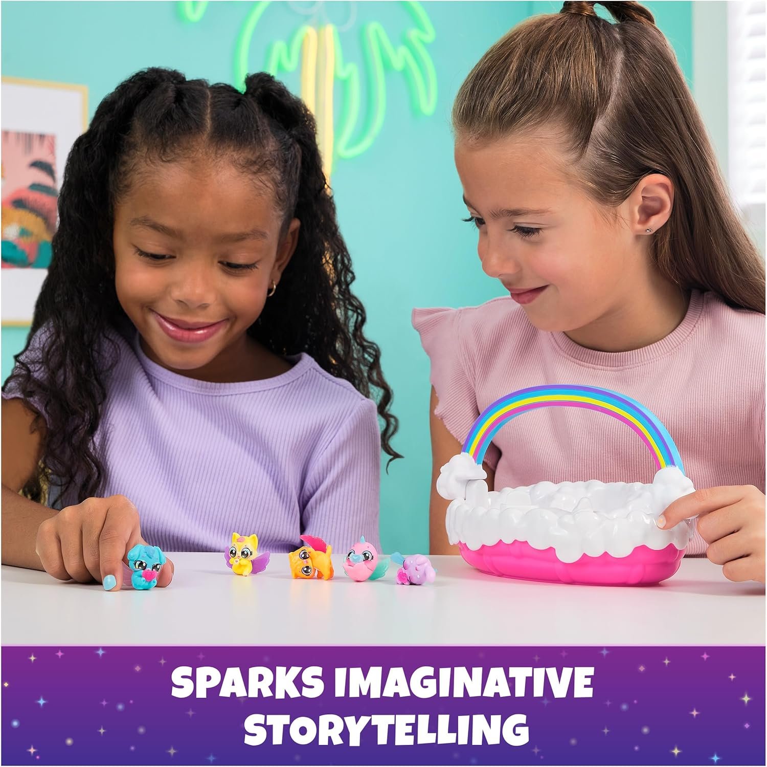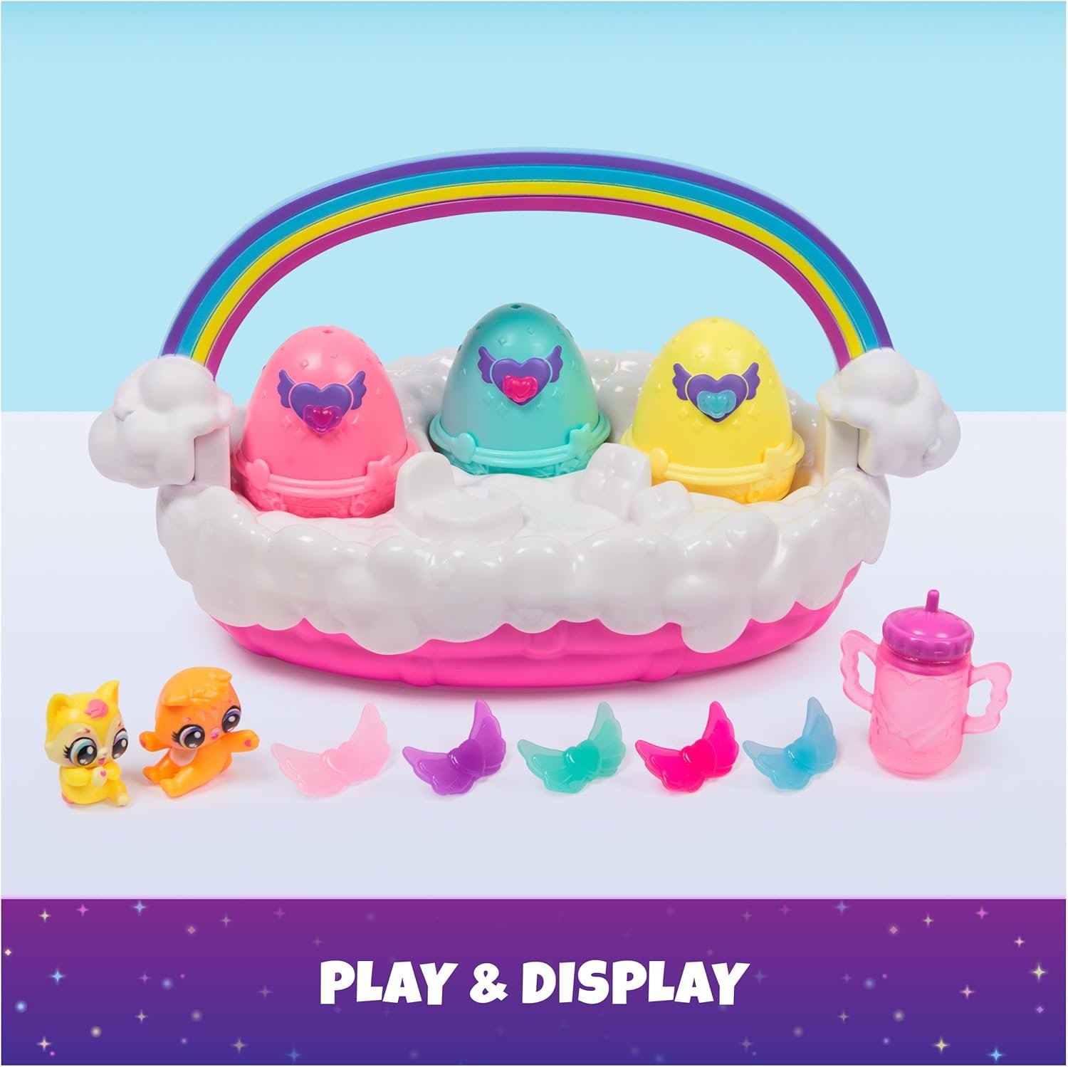Neon Hatchimals Spring Easter basket: Pearlescent clouds & a rainbow handle for on-the-go nurturing pretend play make this toy a special spring treat. Includes 5 Neon Rainbow Hatchimals – Bunnypie, Puppadee, Kittingale & more