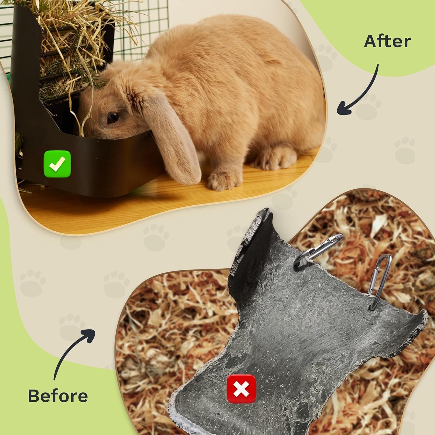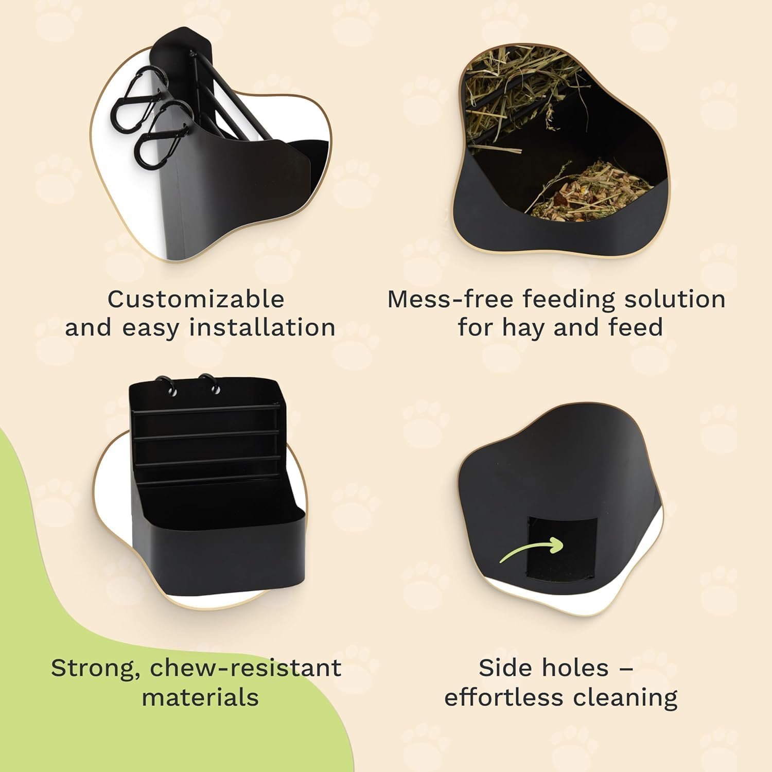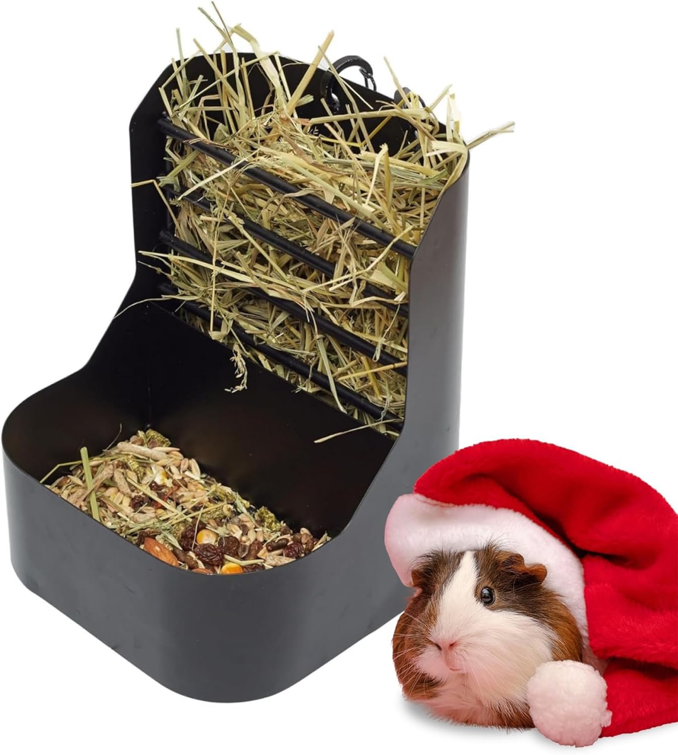 Minimize Mess: Thanks to the division into two compartments for hay and feed, food is not mixed, also due to the holes in the back you can remove hay that has stagnated there