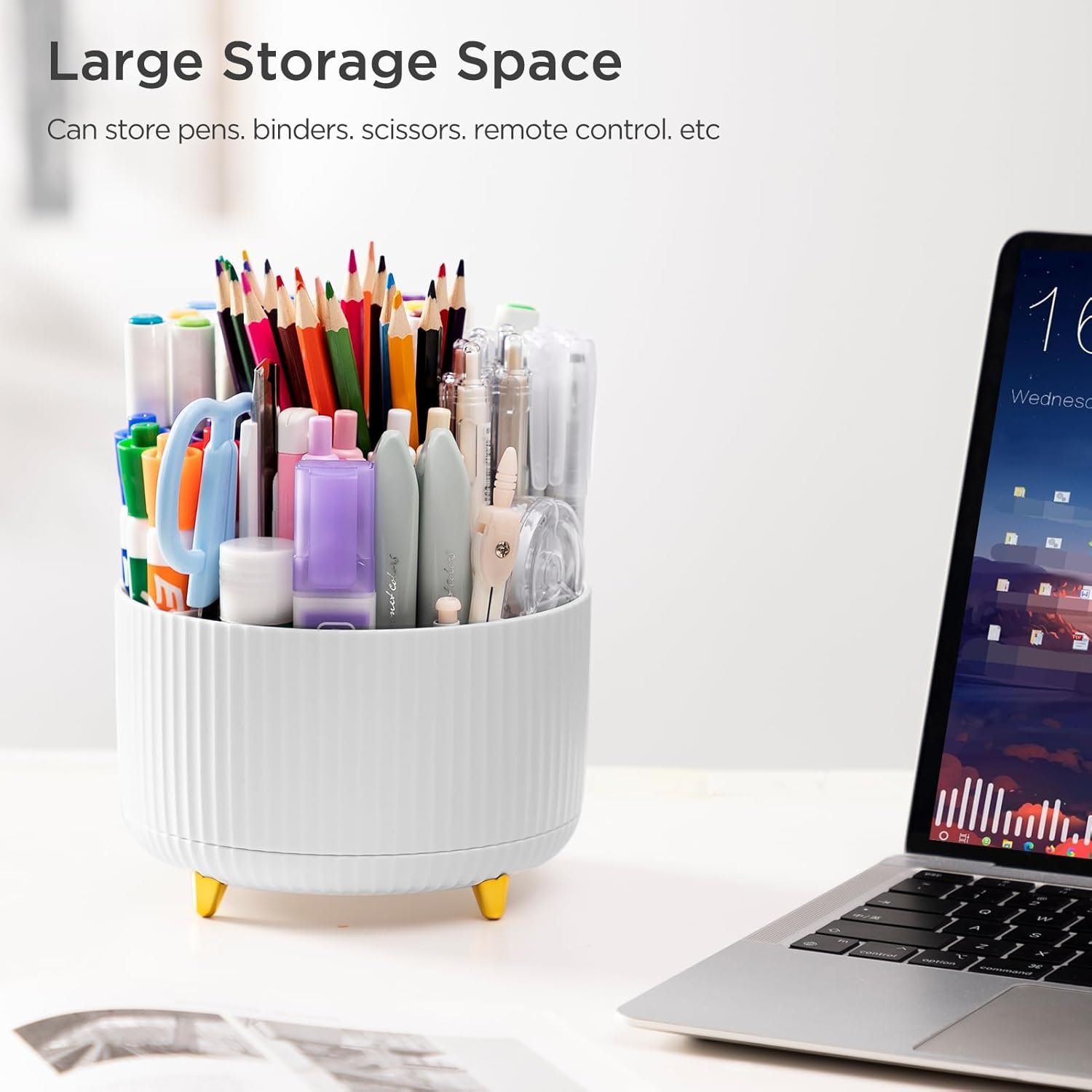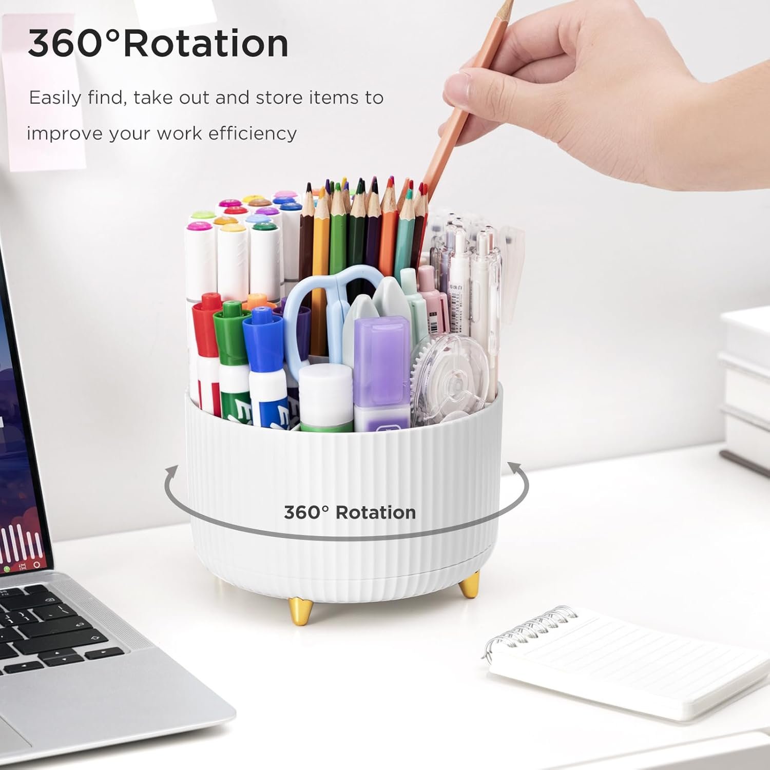 360° ROTATION DESIGN: This desktop pen holder can be rotated 360 degrees, the rotation is smooth, and it will not get stuck. You can rotate it to any angle, easily store or take out the items you need, very convenient and fast. It can not only help You save time and increase productivity, but you can always keep your desktop clean and organized.