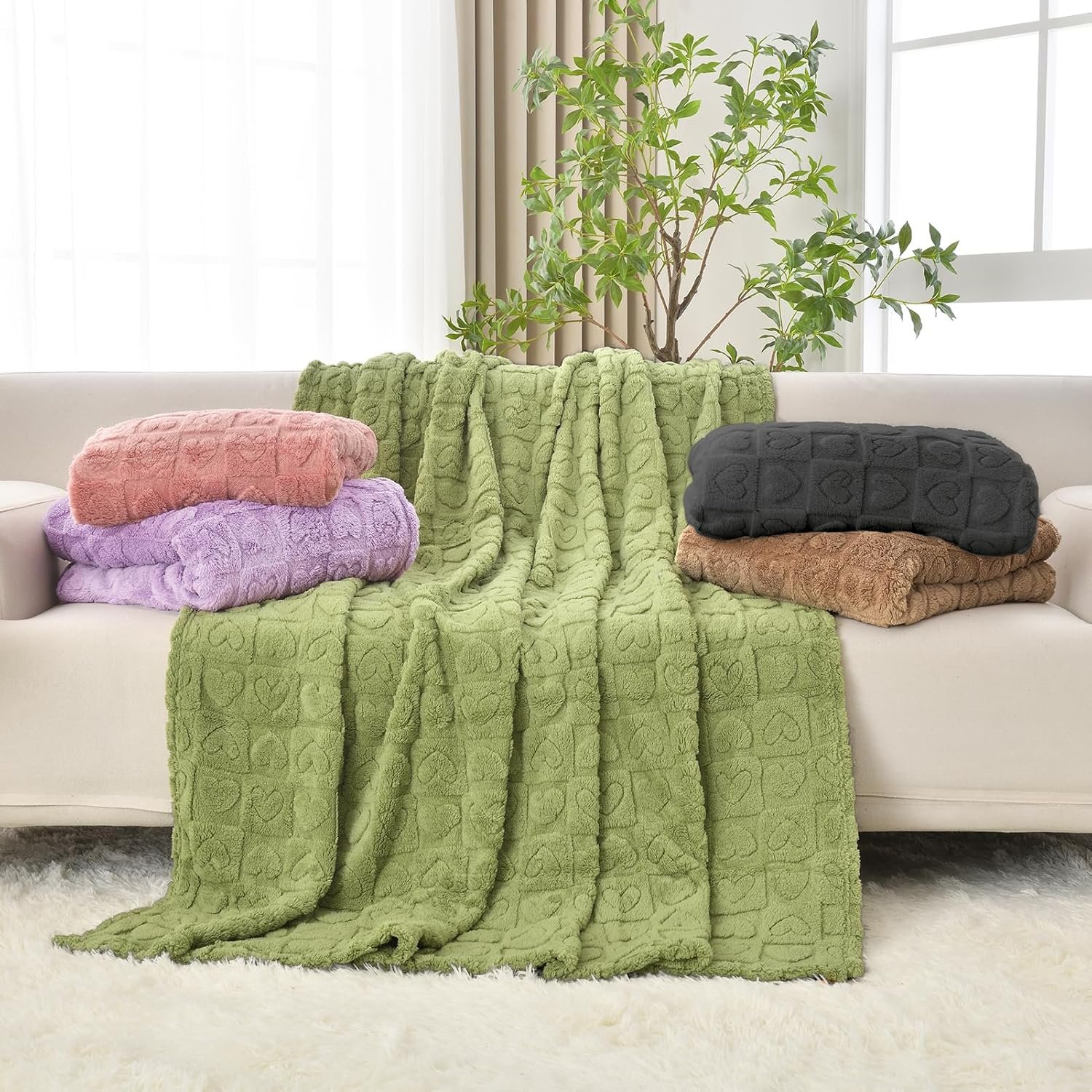 💗【VIBRANT COLORS & MULTIPLE SIZES】Available in a spectrum of hues including pink,sage green,light purple,and grey,our blanket effortlessly enhances the aesthetic of your living space.Choose from a range of sizes including Throw (50″ x 60″), Twin (60″ x 80″),Queen (90″ x 90″),King (90″ x 108″) and more to suit your needs.Versatile and visually stunning,our blanket complements any décor style,whether draped over a sofa for a cozy movie night or spread across a bed to add a romantic ambiance.