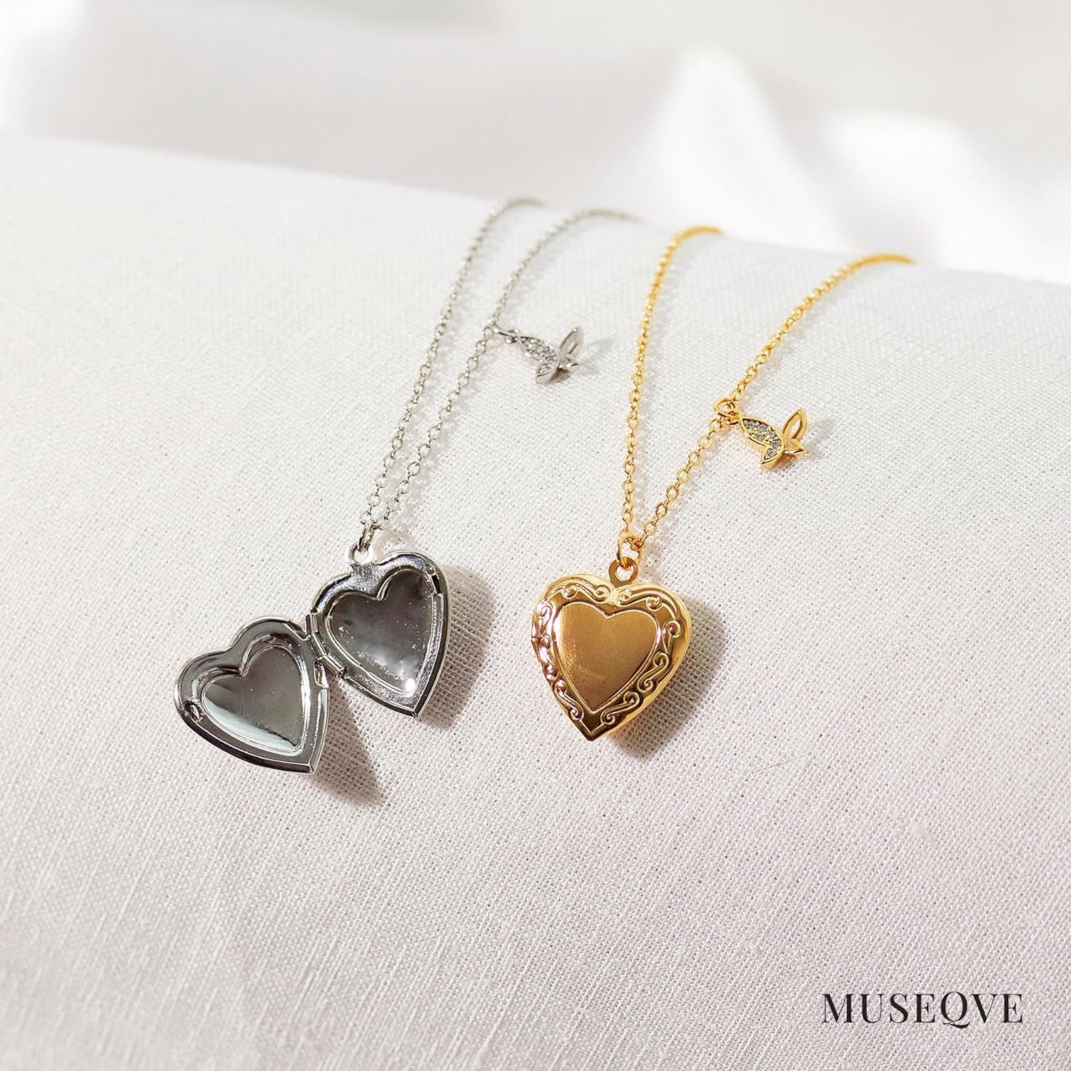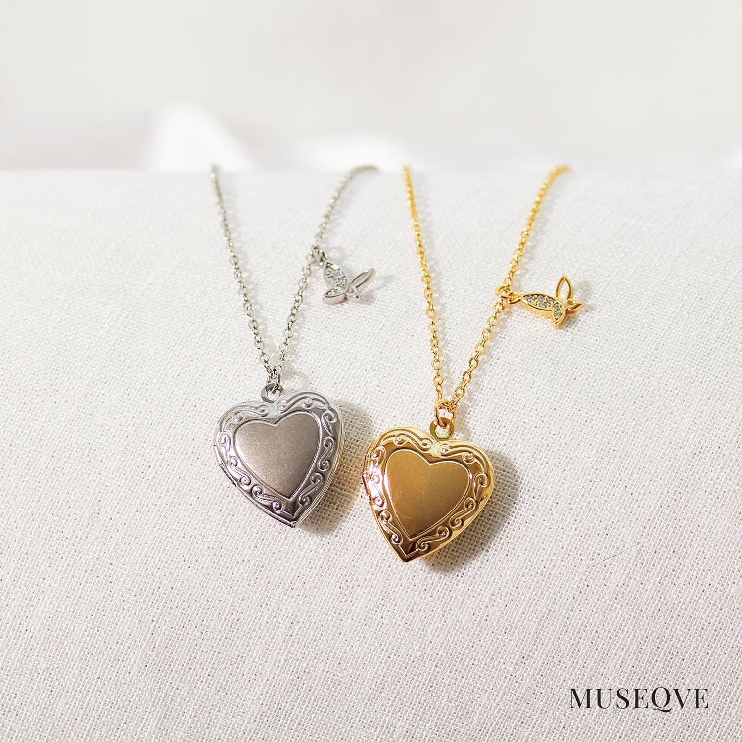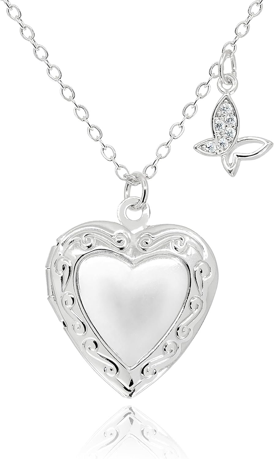 Heart Locket and Butterfly Pendant Necklace for Women Girls • 14K Gold Plated Photo Lockets that Hold Picture Jewelry • Mothers Day Love Gifts Ideas [HN-LK]