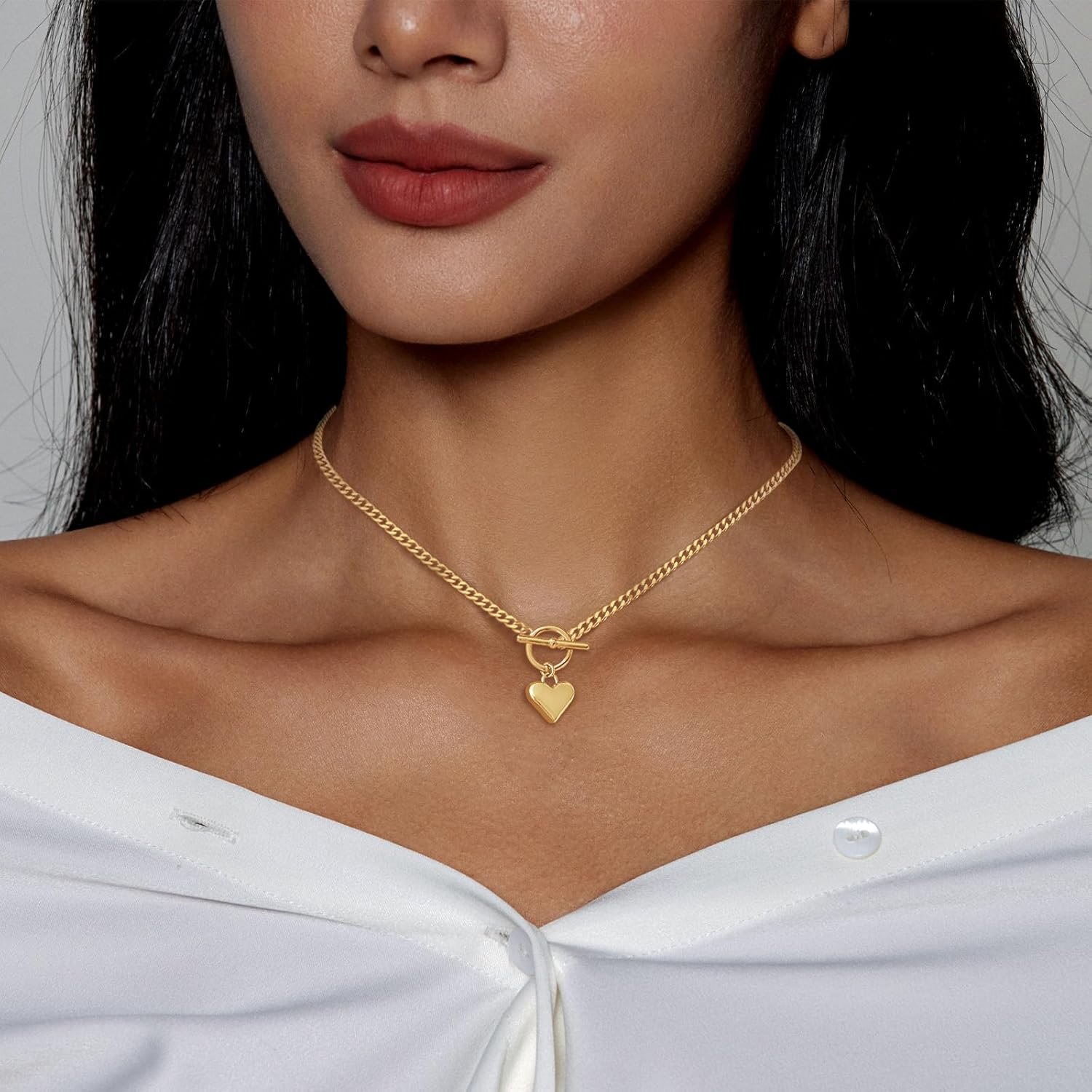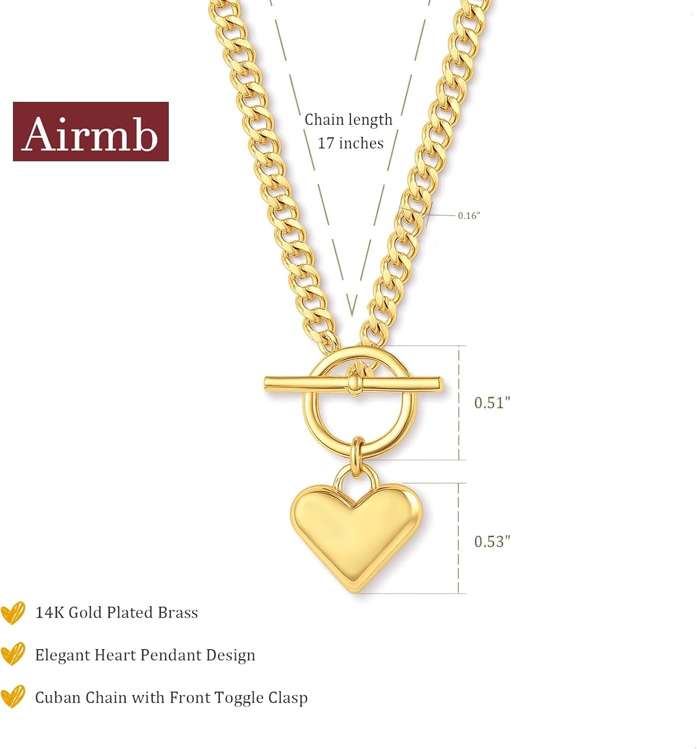 Airmb Cuban Chain Heart-Shaped Necklace