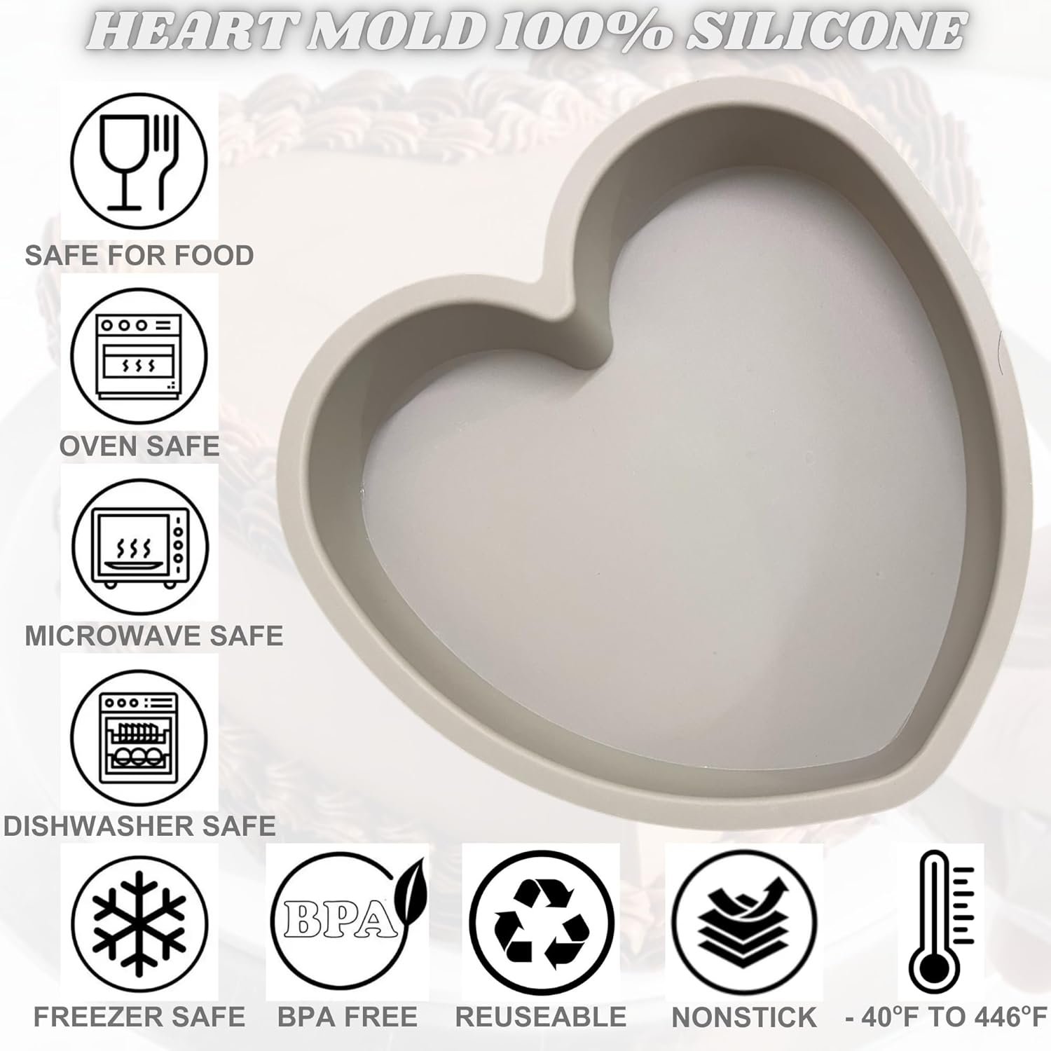 Be the first to review “Heart Shaped Cake Pans 8 Inch – Set of 2 Nonstick Silicone Heart Cake Pan for Baking, Oven & Microwave Safe Molds – Durable, Easy-Clean Matte Surface – Grade Novelty Shaped Cake Pans (Gray)”