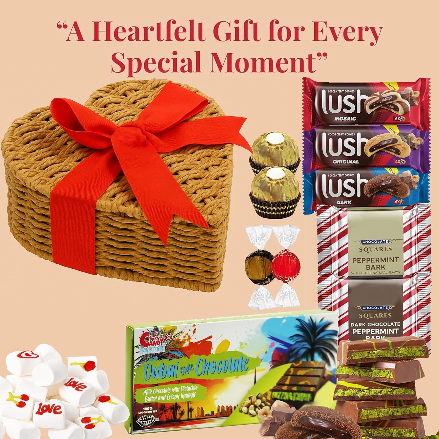 ❤️ Romantic Heart-Shaped Gift Basket: Beautifully crafted heart-shaped basket filled with assorted sweet treats — a perfect way to show love and appreciation.