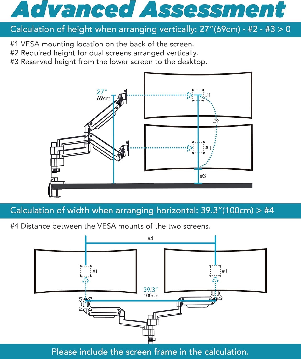 Screw Set for VESA Mounts – M4 and M5 screws come standard in the package. For Samsung G9 monitors, use the VESA adapter that comes with your monitor.