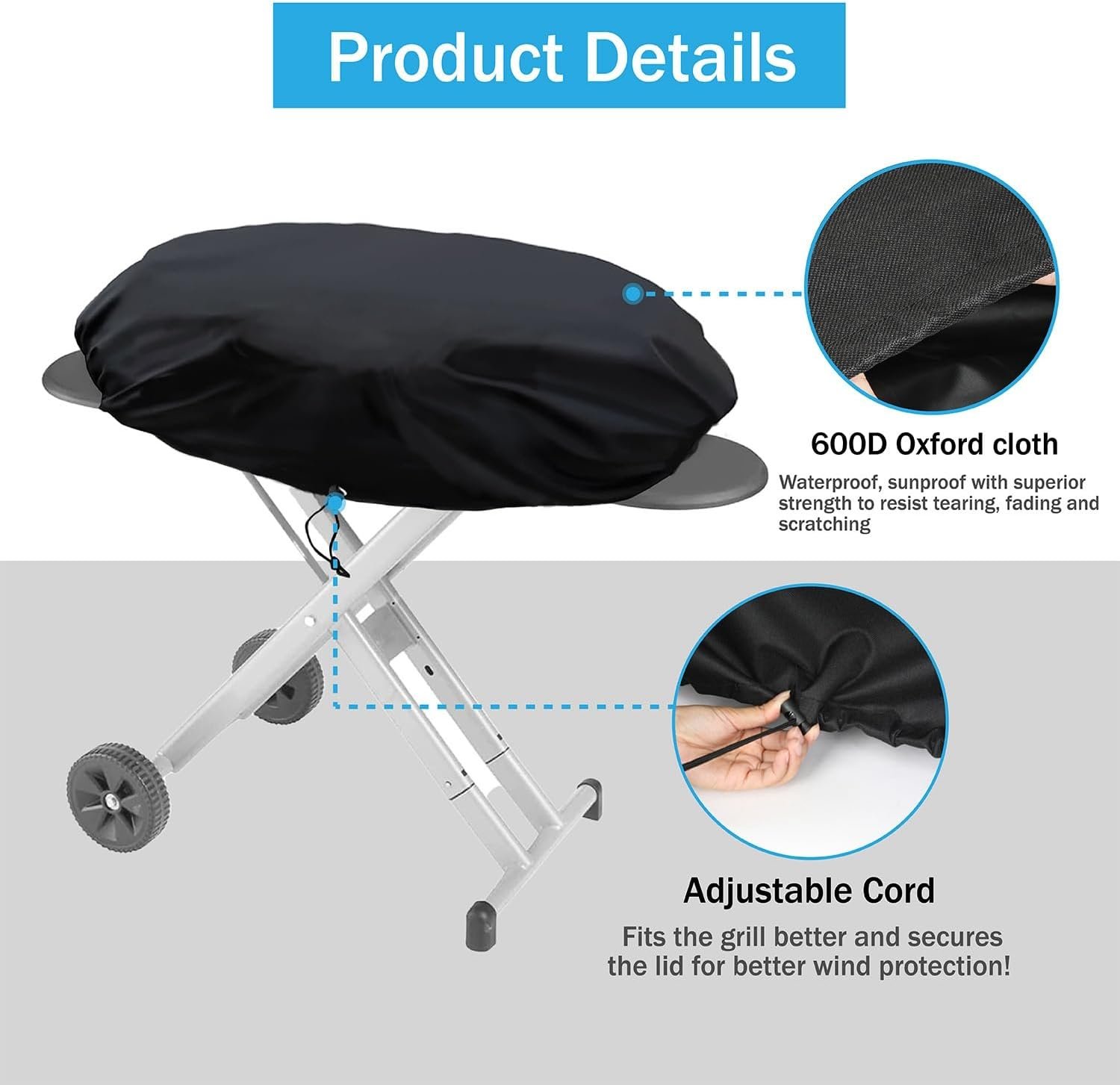 【WATERPROOF and LEAK-PROOF】- The small portable grill cover is made of durable 600D Oxford fabric with a thick PVC coating that is highly waterproof. The sturdy stitching prevents leaks and can be waterproof to always keep the portable grill cover clean and dry!