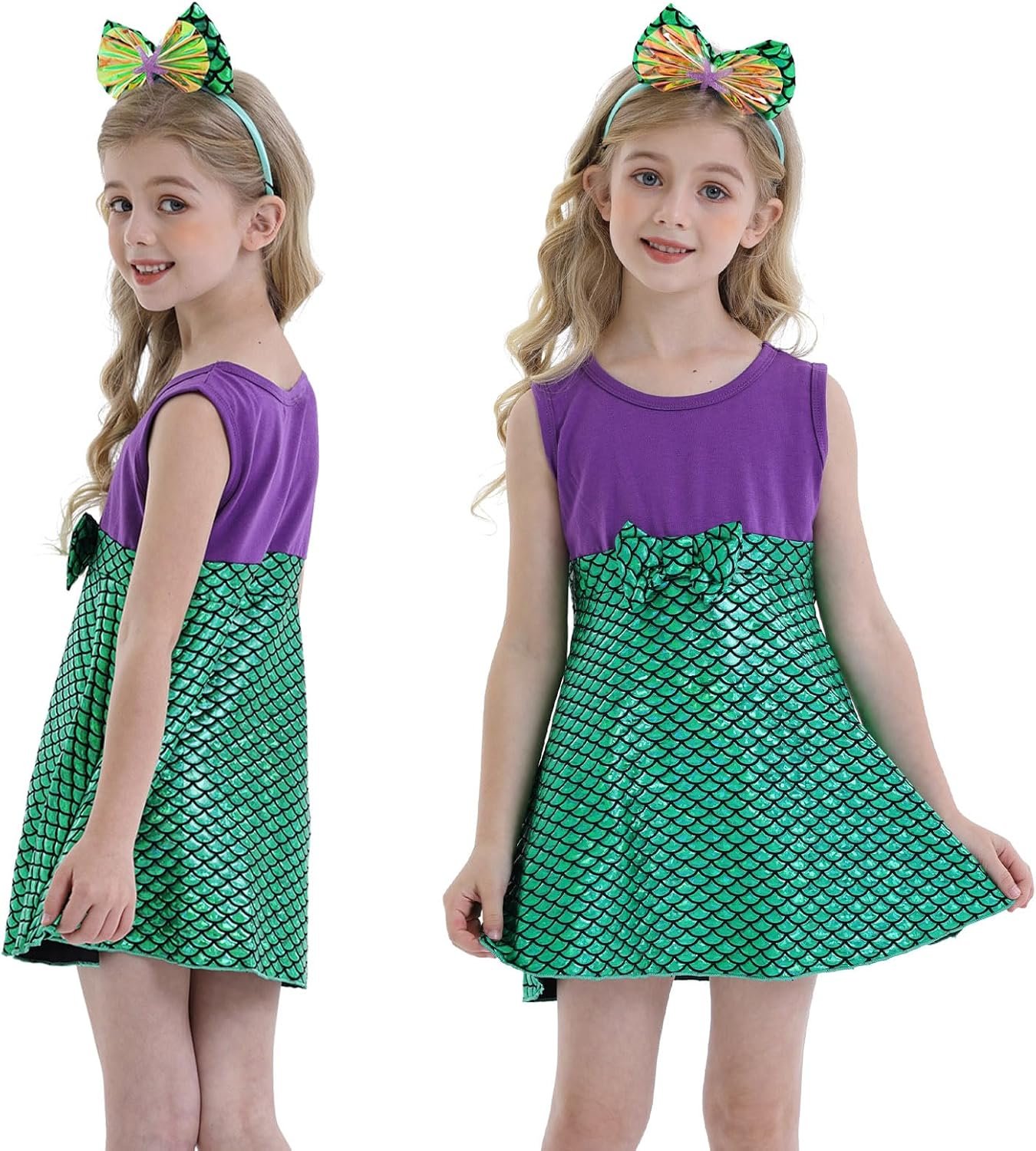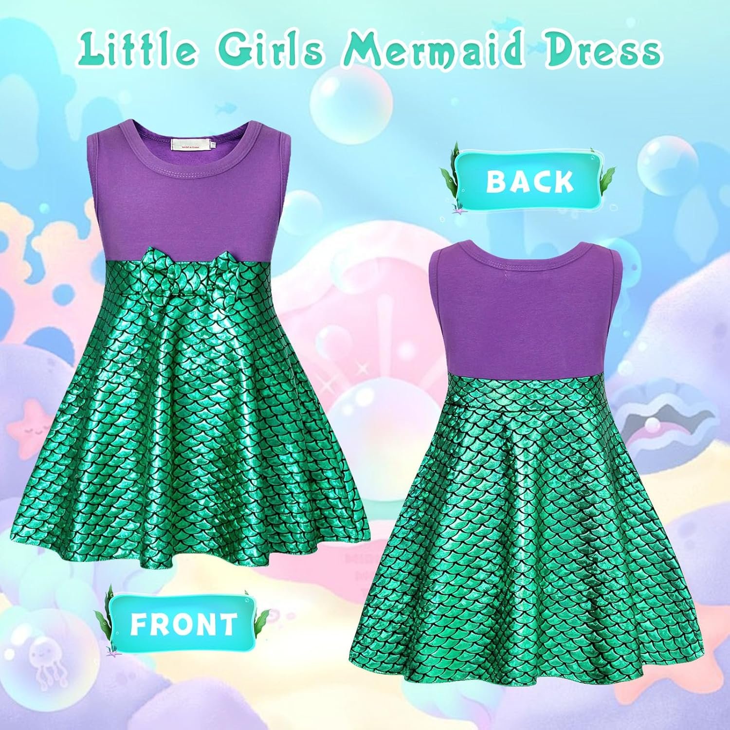 Customers find the mermaid dress cute and well-made, with amazing fabric and good value for money. They describe it as comfortable, with one customer noting it doesn’t cause itching. The sizing receives mixed feedback – while some say it fits perfectly, others find it too short. Durability is also mixed, with some saying it holds up well while others report the bow falling off after a couple of wears.