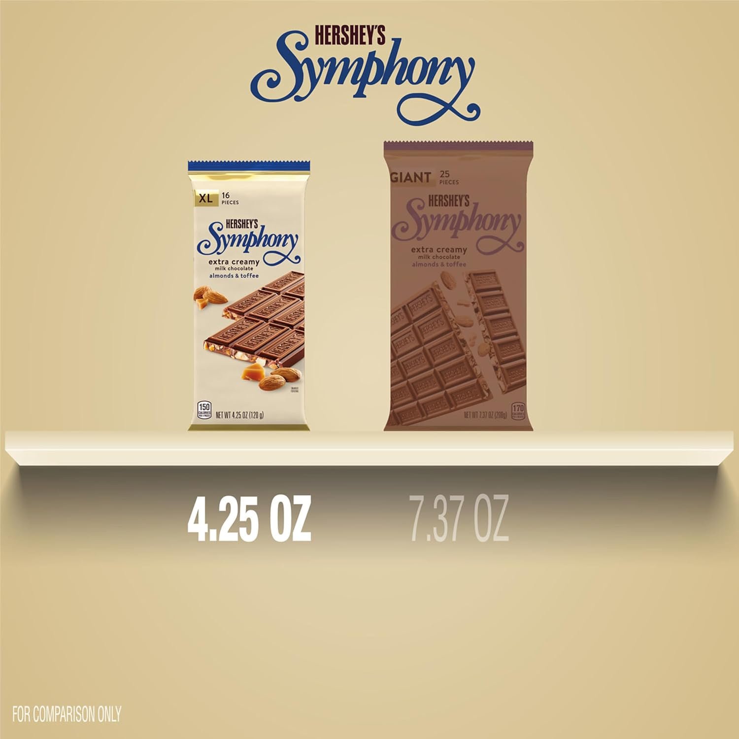Contains twelve (12) 4.25-ounce, 16-piece HERSHEY’S SYMPHONY Extra Creamy Milk Chocolate, Almonds and Toffee XL Candy Bars in a bulk case