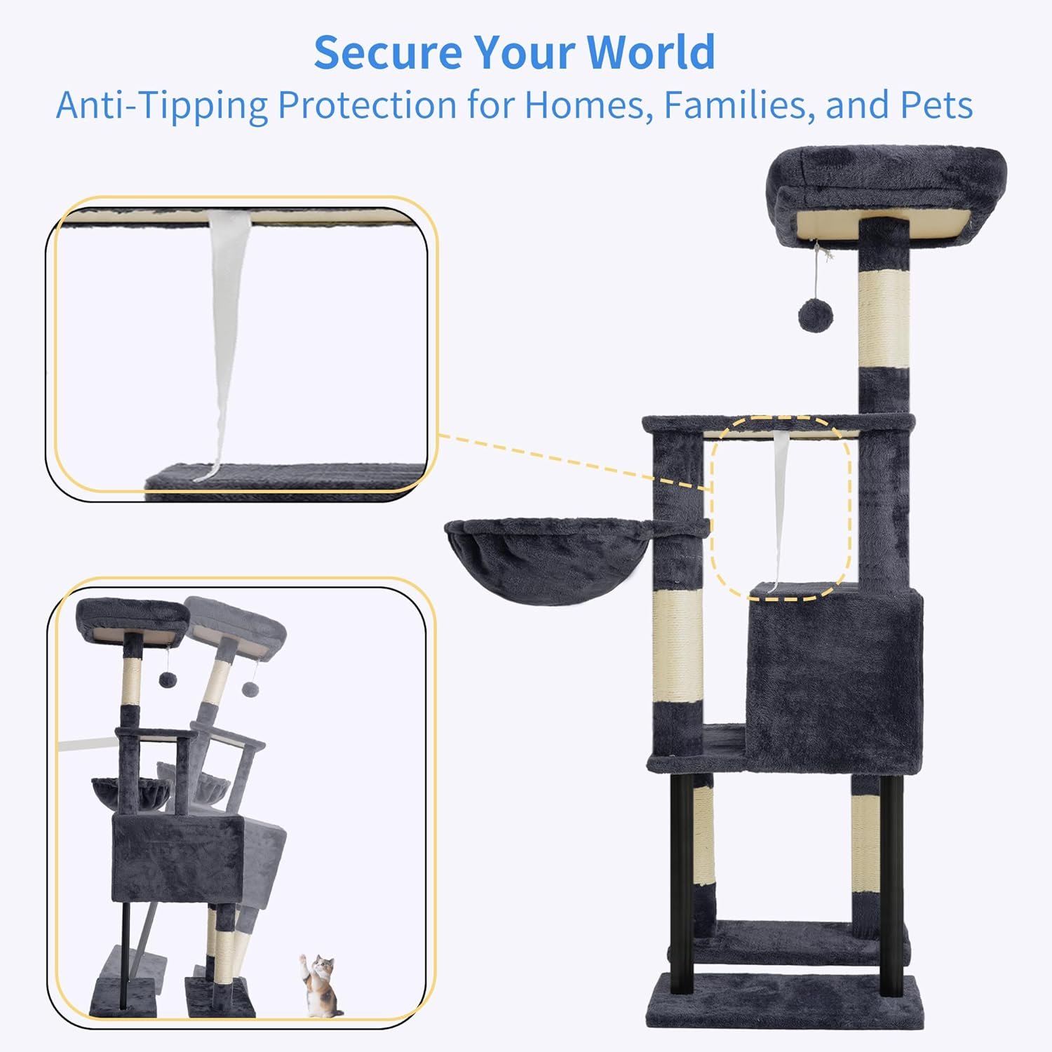 Sturdy Iron Pipe Design: Unlike other small cat trees, we have replaced two metal poles at the bottom, which are different in appearance from other cat trees, and also equipped with anti-tipping straps, which all add to the stability of the cat tree.