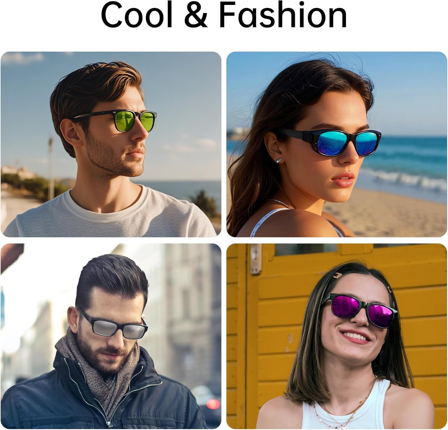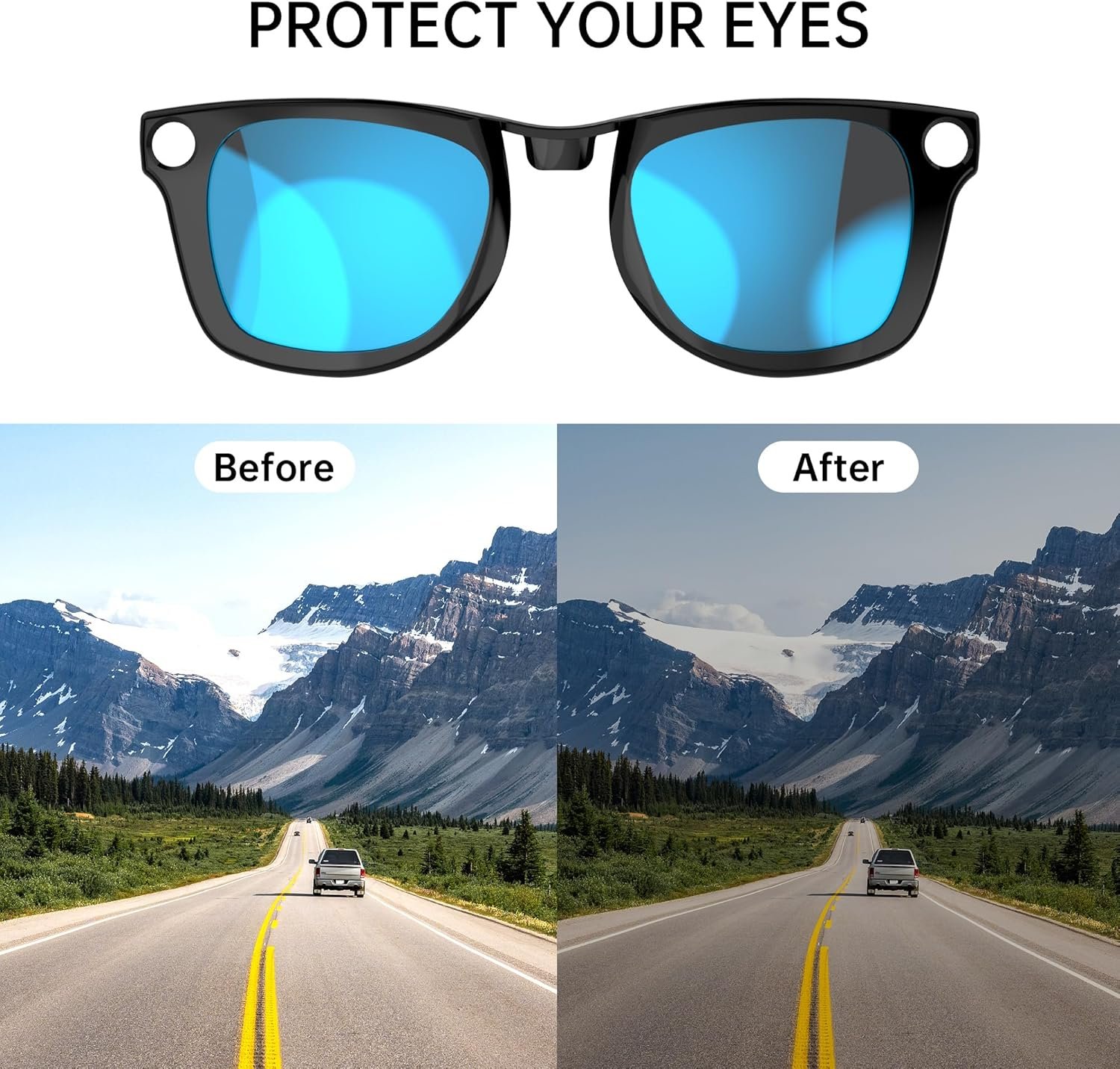 Day and Night Protection, Clear Vision: The color-changing clip set designed for Ray Ban Meta Wayfarer effectively blocks glaring sunlight and road reflections, reduces interference from car lights, improves visual comfort, and ensures worry-free driving safety