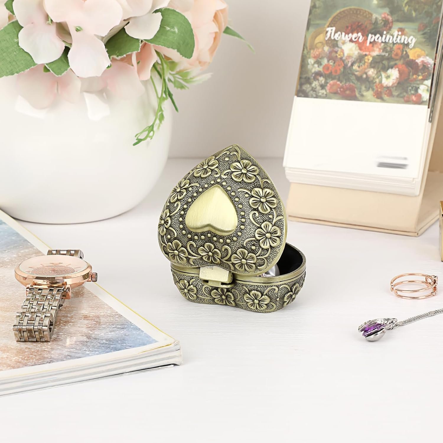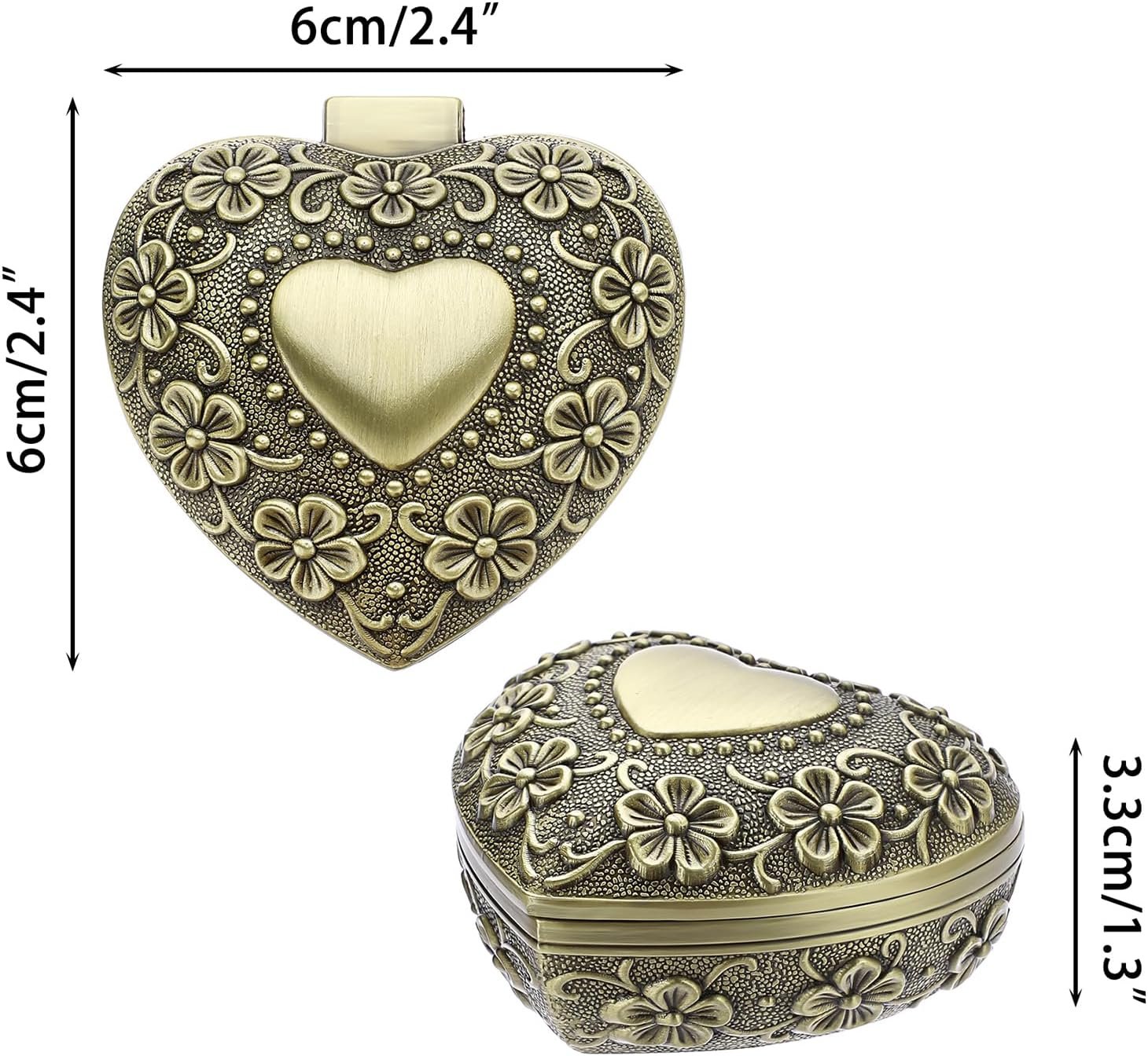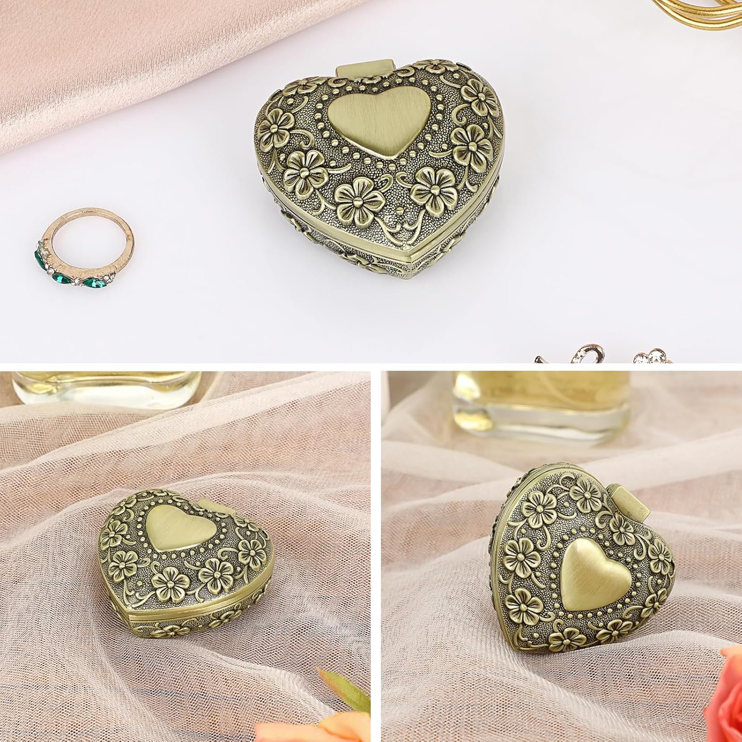 VINTAGE AND ELEGANT DESIGN – Sweet Heart Shape, Engraved exquisite retro flower pattern around the surface ,vintage and adorable,Perfect for storing earrings, rings, or other small jewelry , it is also a very attractive retro tabletop décor which enhances the overall aesthetic for your house