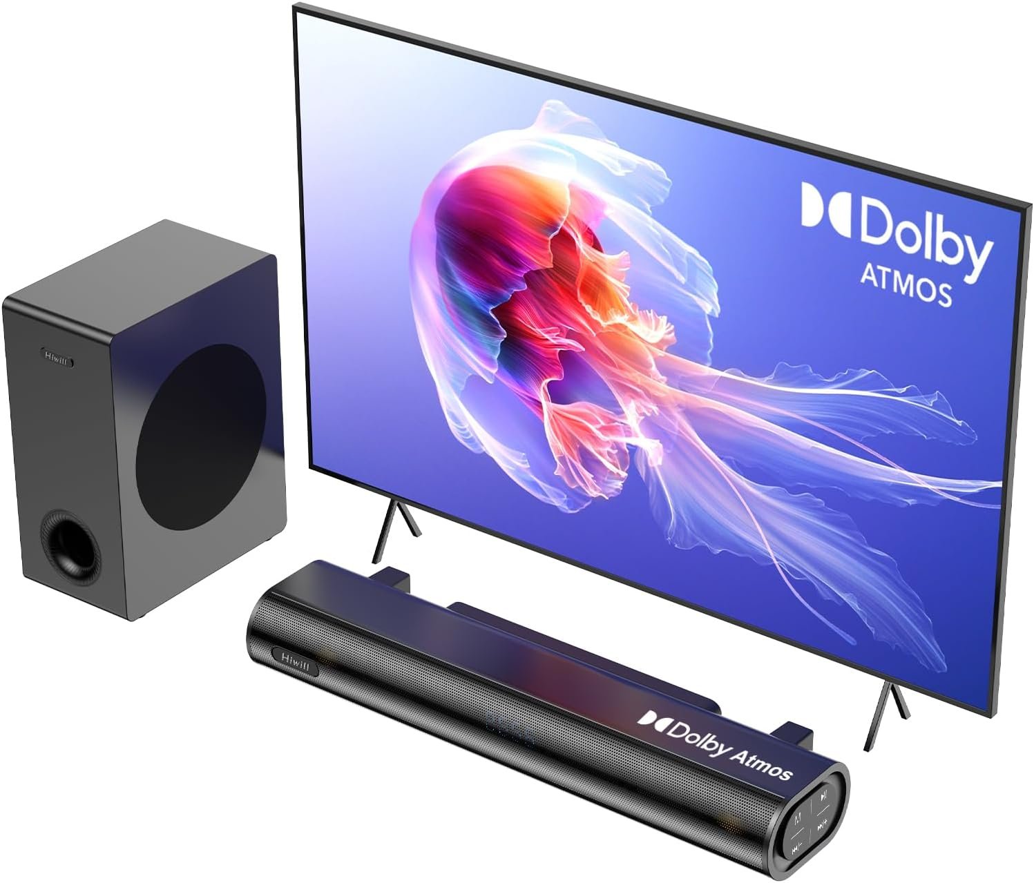 Hiwill HarmonicX Sound Processing – HXS-Processing ClearVoice: Our next-generation sound processing technology for crystal-clear vocals. Through superior materials and Hiwill’s exclusive HarmonicX Sound Processing. The soundbar with subwoofer gets to the root of the problem of unclear vocals and poor sound quality that 2.0 and 2.1 channel soundbars can’t solve, allowing you to experience crystal clear sound and unparalleled detail, creating a truly immersive, high-quality audio experience.