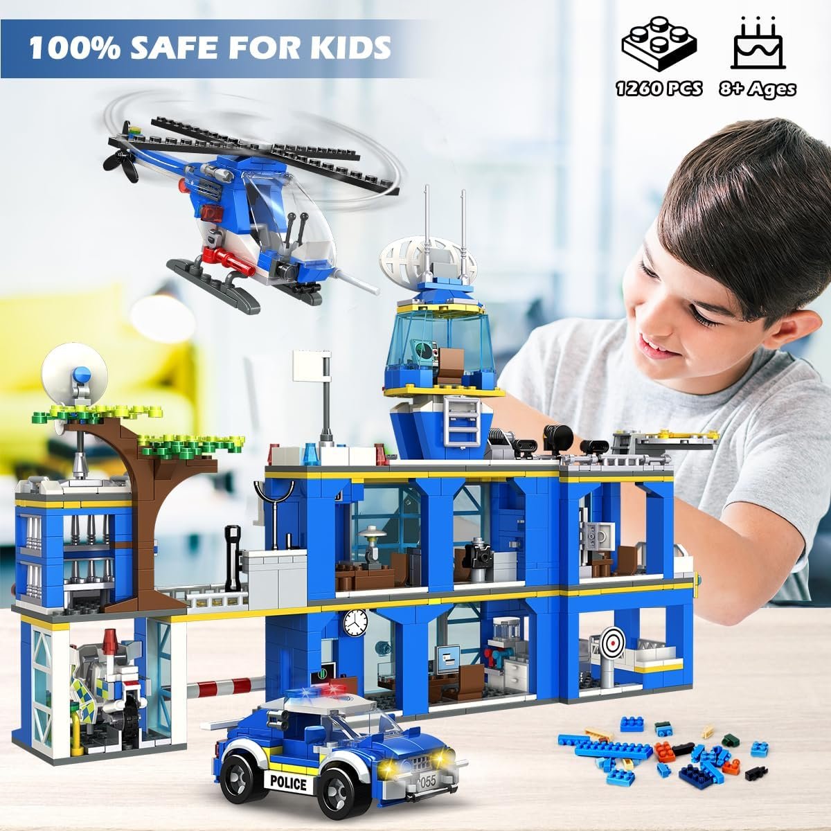 BIG POLICE STATION – The policestation building toy includes 1260 PCS and measures 16.7 x 5.5 x 11.3 inch when finished; it also includes exquisite stickers for model to provide more aesthetic and exploratory fun, giving hours of exciting adventure fun for city police fans