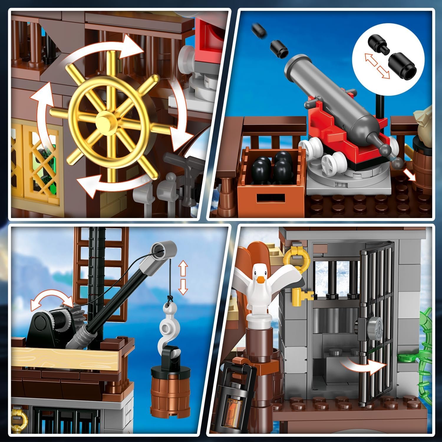CREATIVE LIGHTING DESIGN – This pirate house architecture building enables with creative lighting design, presenting an amazing lighting effect and a warm atmosphere of a seaside tavern at night. Adults and kids can enjoy hours of building time, and explore build play fun for a greater sense of independence and achievement
