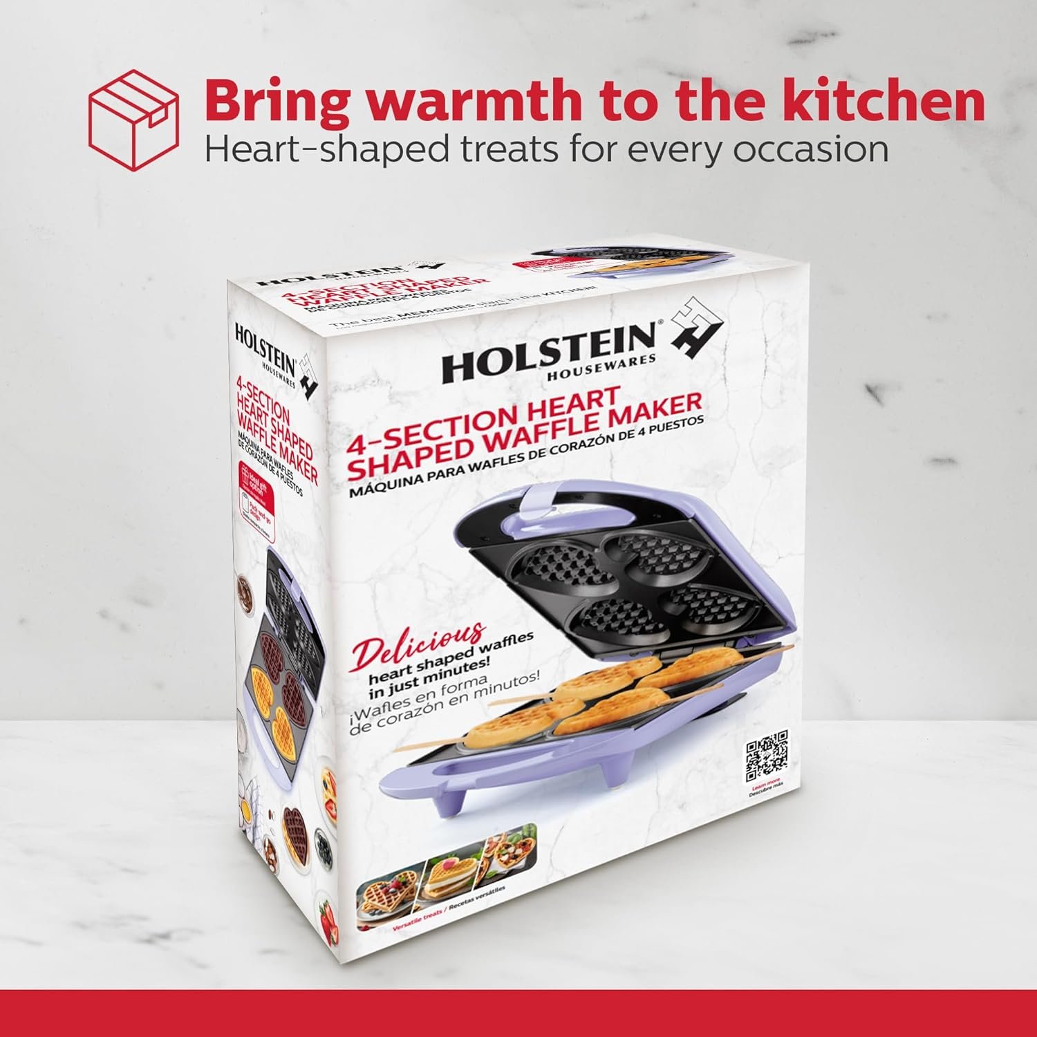 Bakes 4 heart-shaped waffles in minutes with a thick mold design—perfect for kids’ snacks, breakfast in bed, or fun school treats in a small waffle maker.