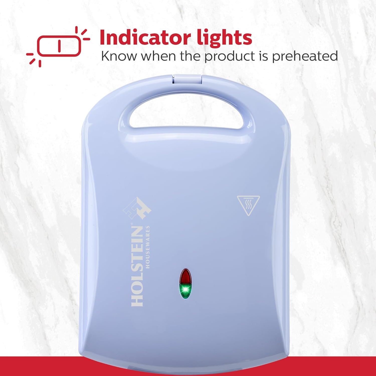 Built-in indicator lights signal when the waffle iron is powered on and preheated, while the cool-touch handle and safety lock help ensure a safe experience.