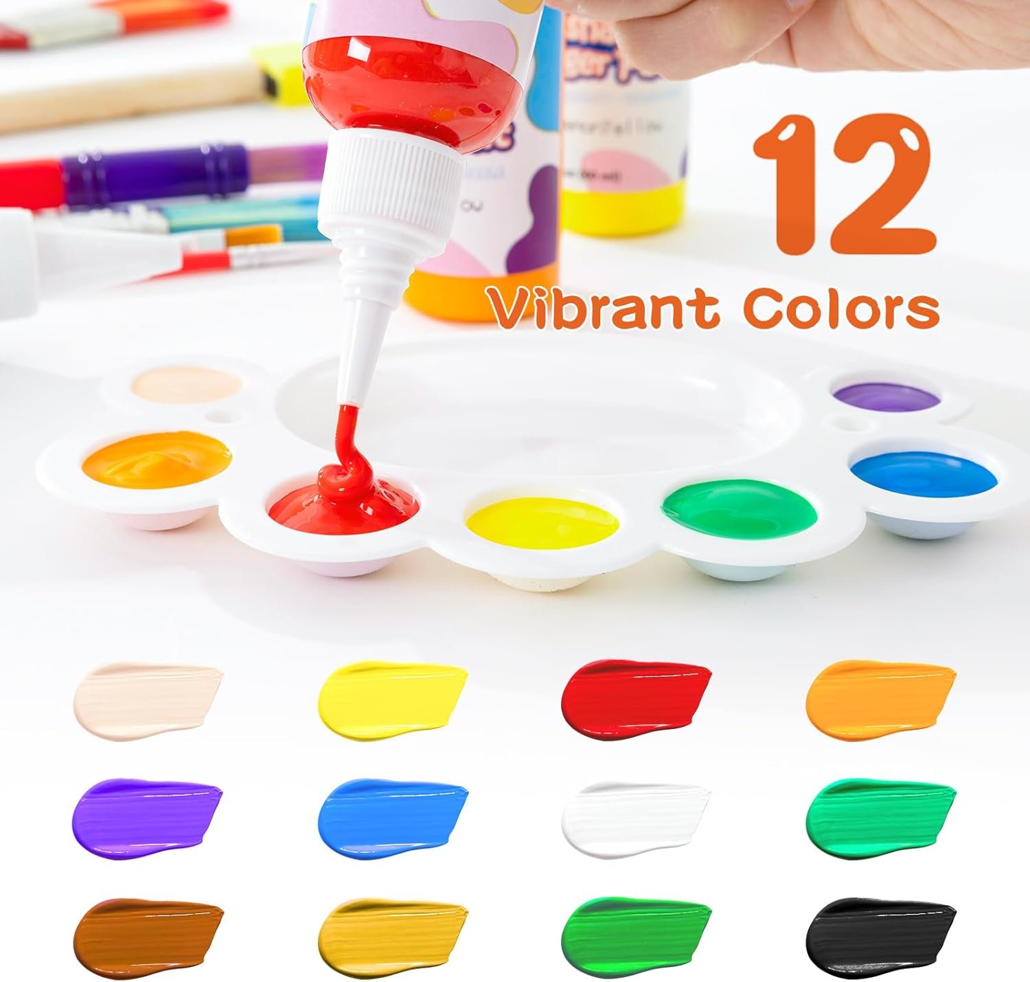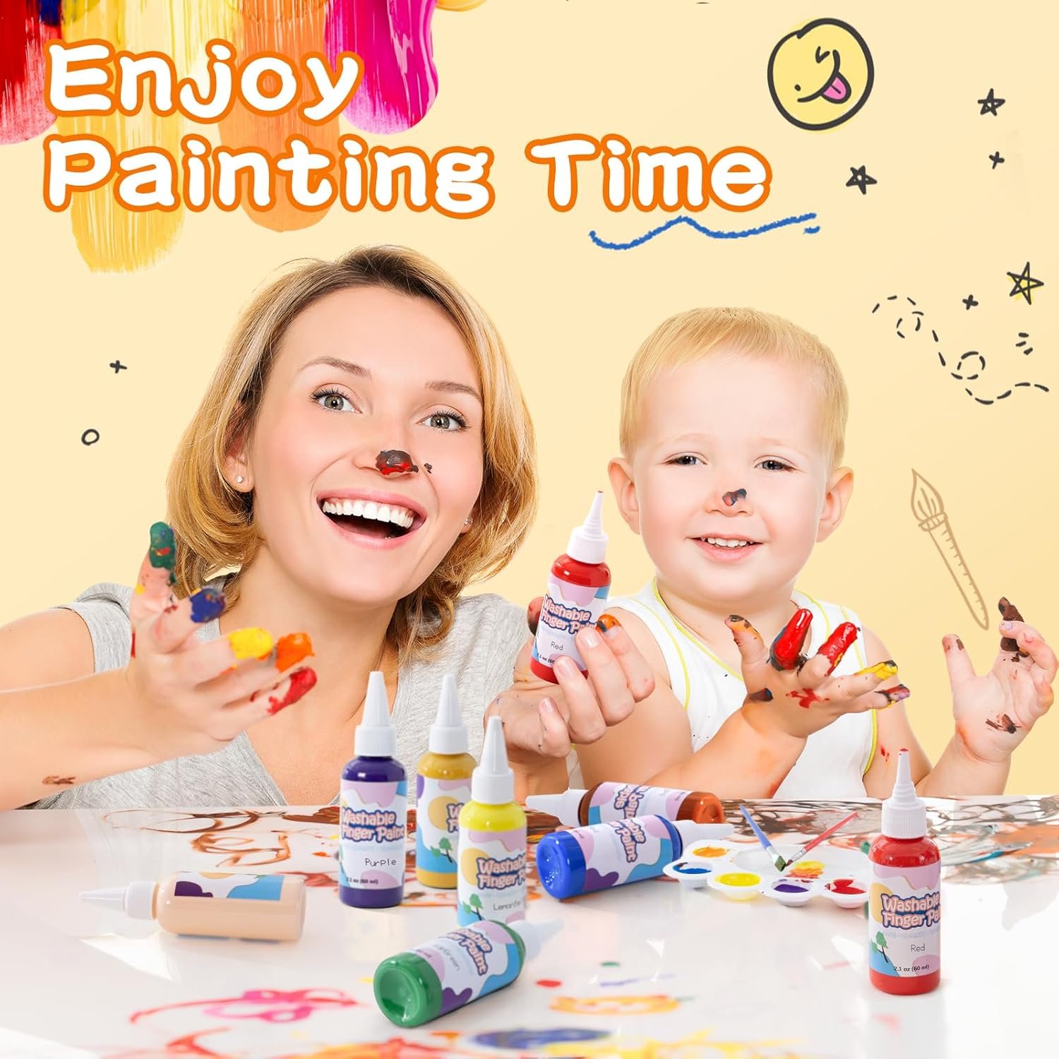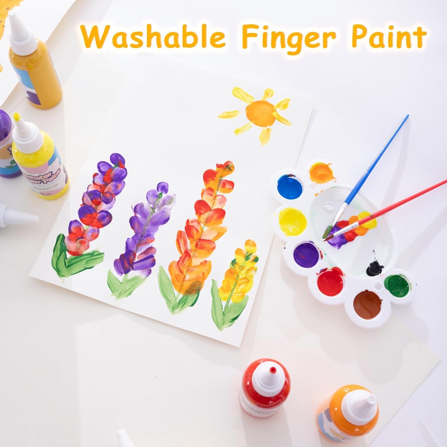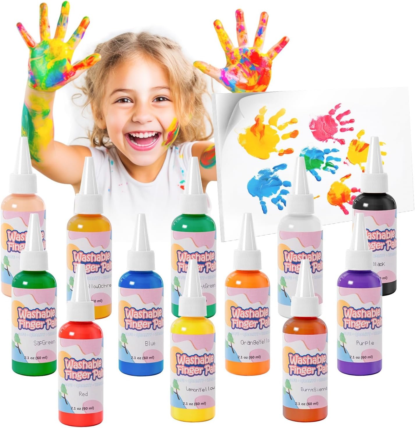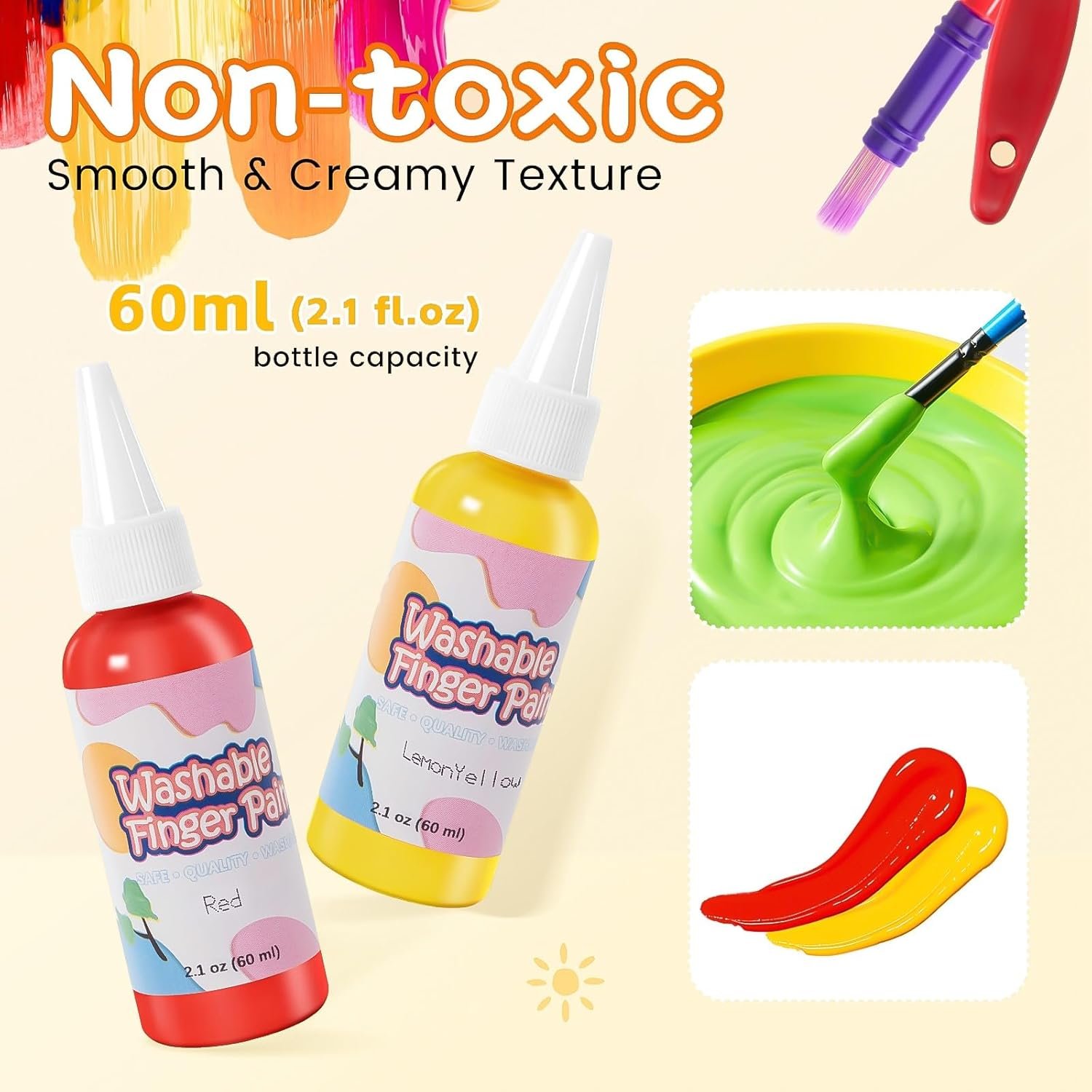 【What You Get】 Our Finger Paint Set comes with 12 vibrant colors (2.1 fl oz/Bottle ). An ideal gift for any ocassion.