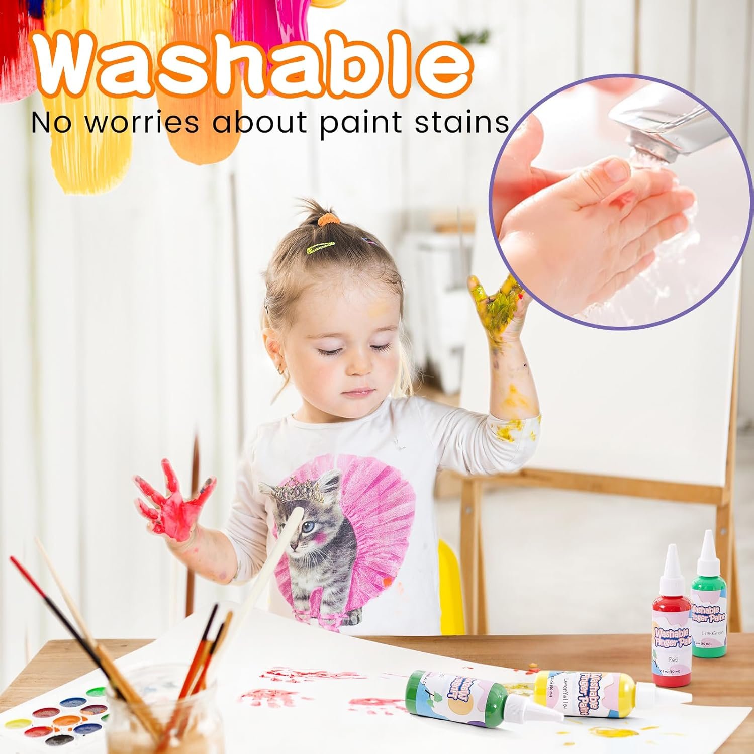 【Washable & Easy Clean】 No need for stain remover, our finger paints are washable and easy to clean, they can be easily washed off from skin and most surfaces such as clothing, fabrics, plastics, etc.