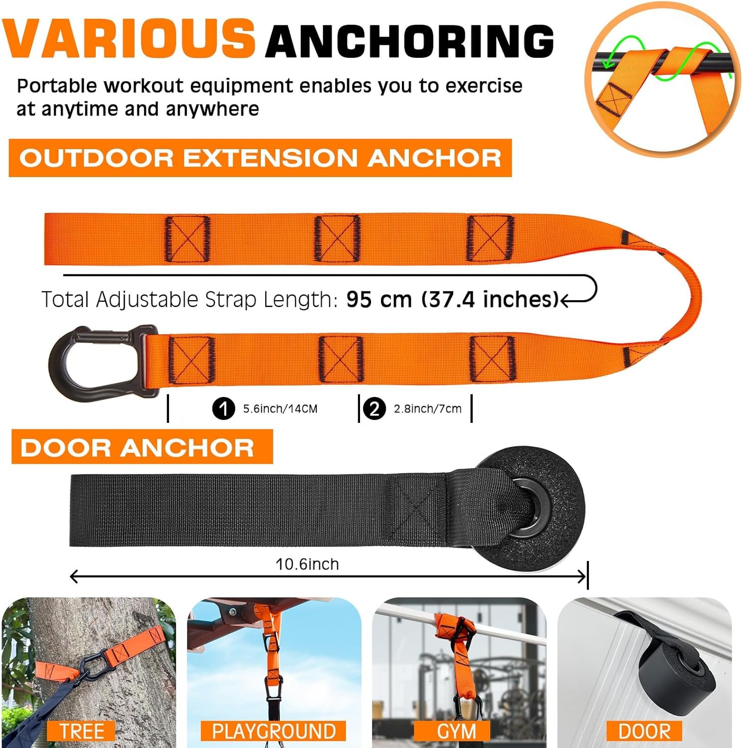 Quick Setup for Indoors or Outdoors: Includes a sturdy door anchor and extra-long strap (95cm) for use with doors, beams, or bars inside—or trees, posts, and bars outside. Enjoy a flexible workout routine wherever you are