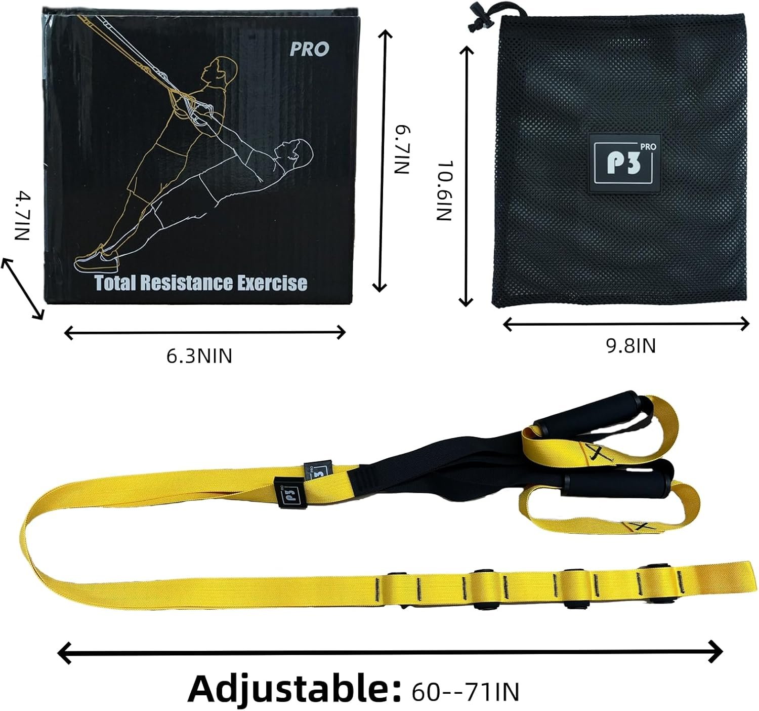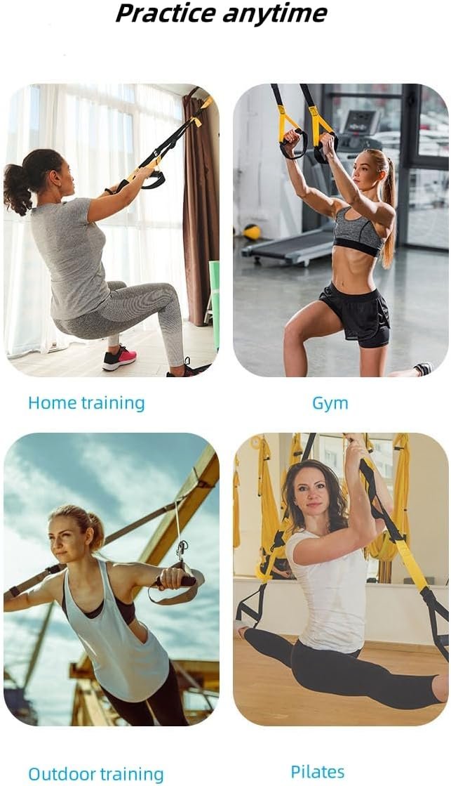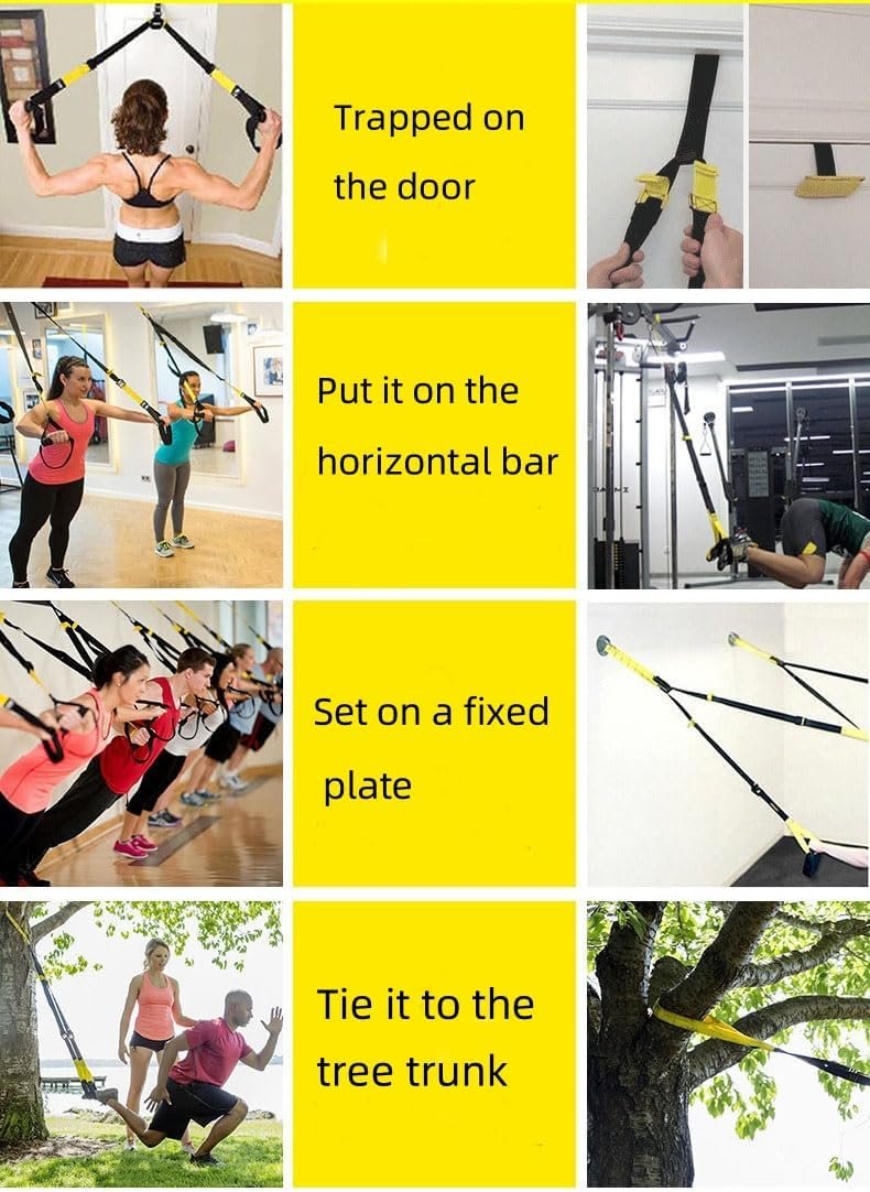 Easy to Set Up and Use This home suspension training kit with a door anchor and adjustable resistance training straps for quick setup and effortless adjustments. Perfect for indoor and outdoor workouts, suspension trainereasily attaches to most fixed structures—such as doors, rafters, trees, ceiling mounts, and power racks—making it a complete portable gym.exercise equipment Achieve a full-body workout and reach your fitness goals with this versatile all-in-one training solution.