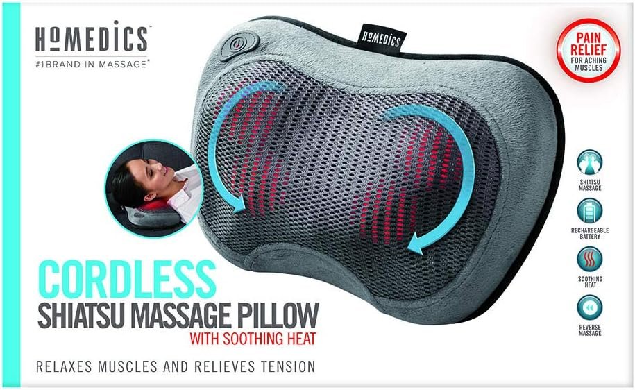 DEEP KNEADING SHIATSU: The HoMedics Cordless Shiatsu Massage Pillow with Heat offers a deep-kneading shiatsu massage that feels like a real masseuse targeting your tired neck and shoulder muscles.