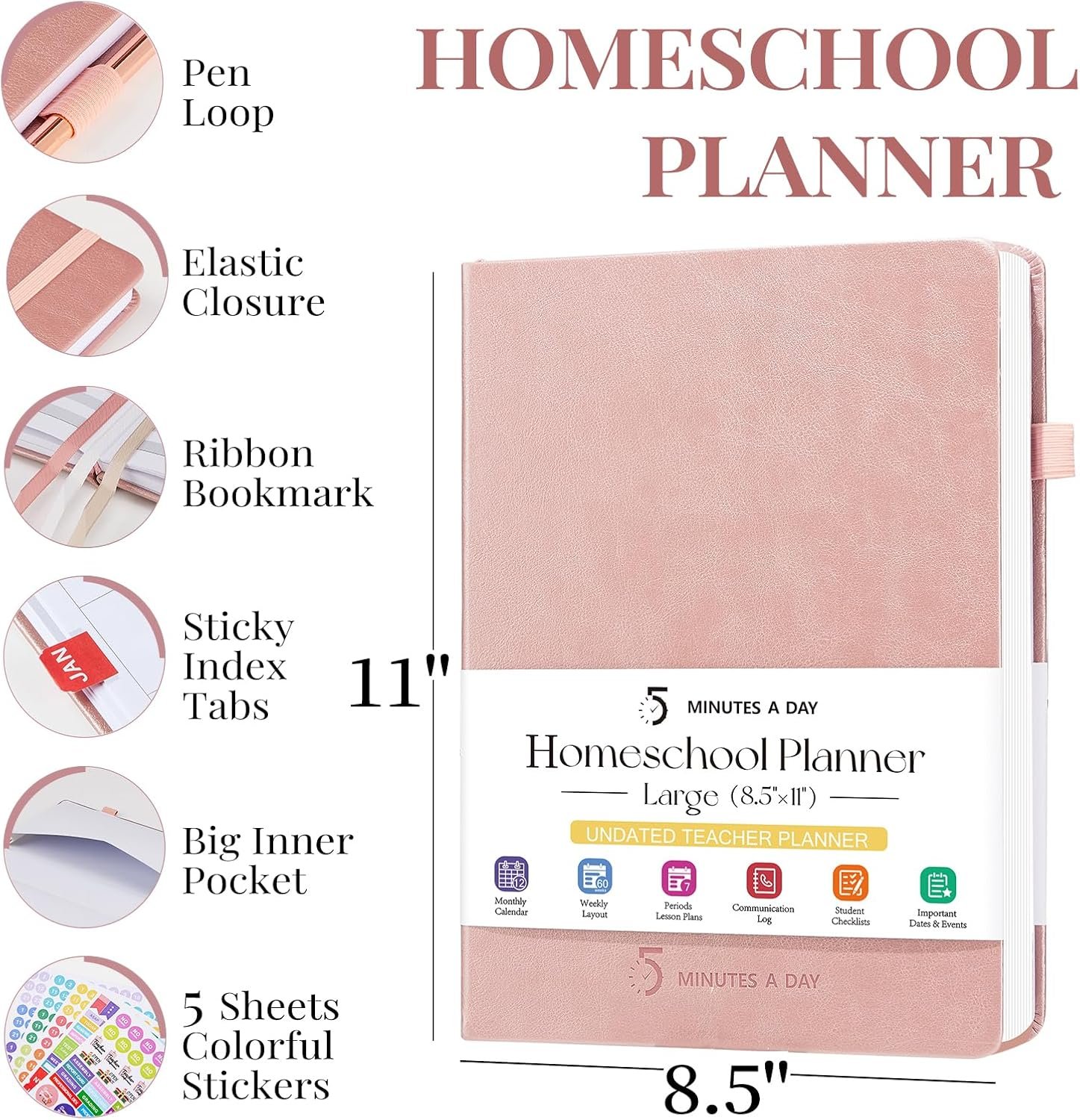 for parents, mom, teacher, homeschoolers 5 MINUTES A DAY Homeschool Planner