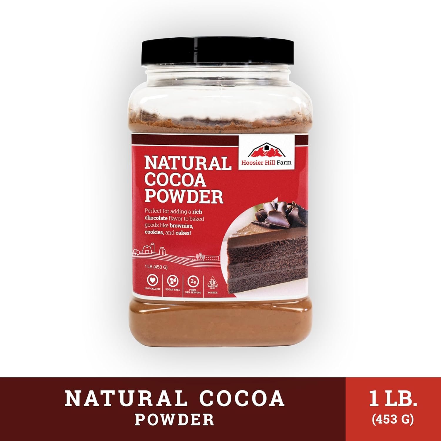 1 lb. Natural Cocoa Powder in a resealable plastic jar.