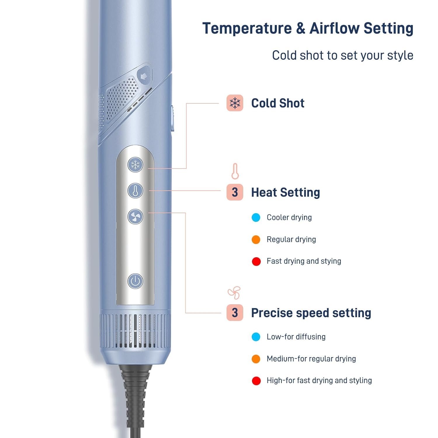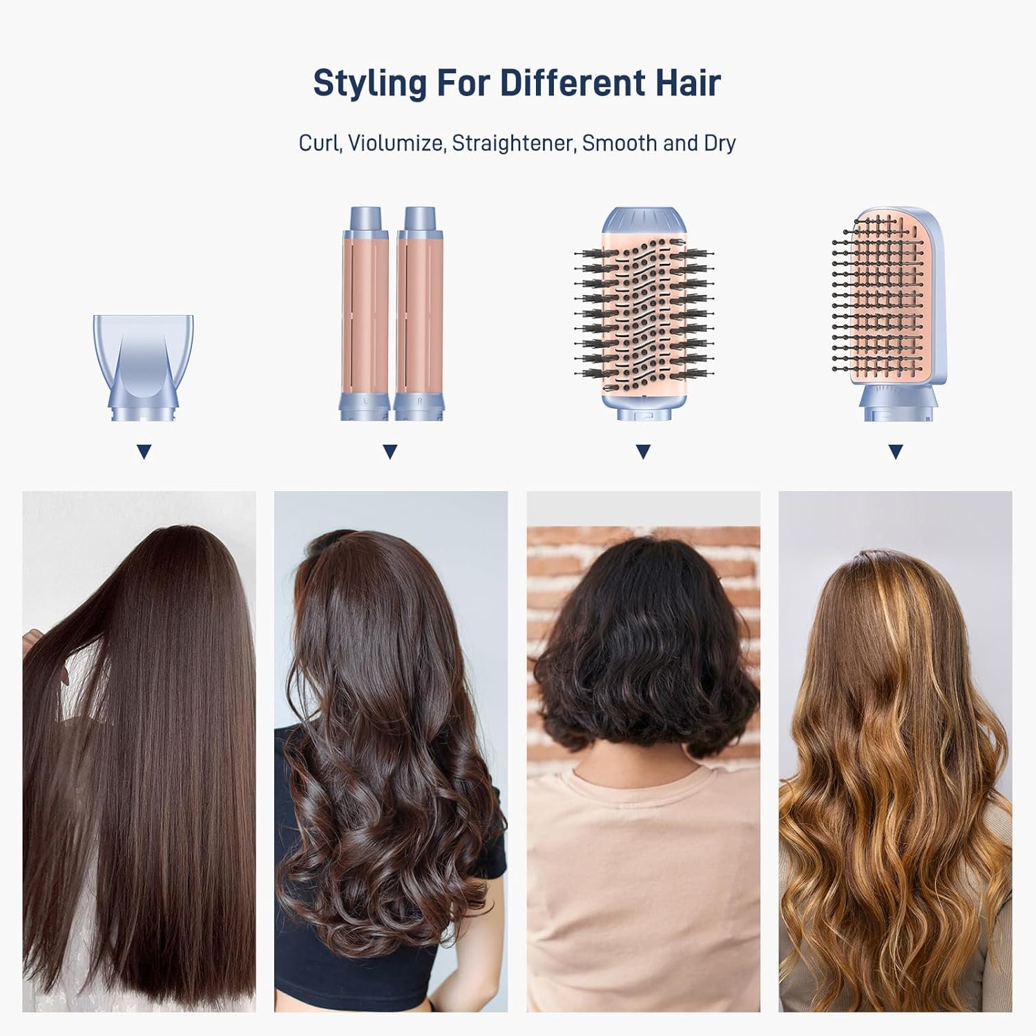 5 in 1 hot air styler emits 20 million negative ions during the hair drying air hair wrap process, flex hair style making unruly hair more manageable and smooth, giving it a natural shine and elasticity. This feature ensures that your hair remains soft, manageable, and easy to style at all times.