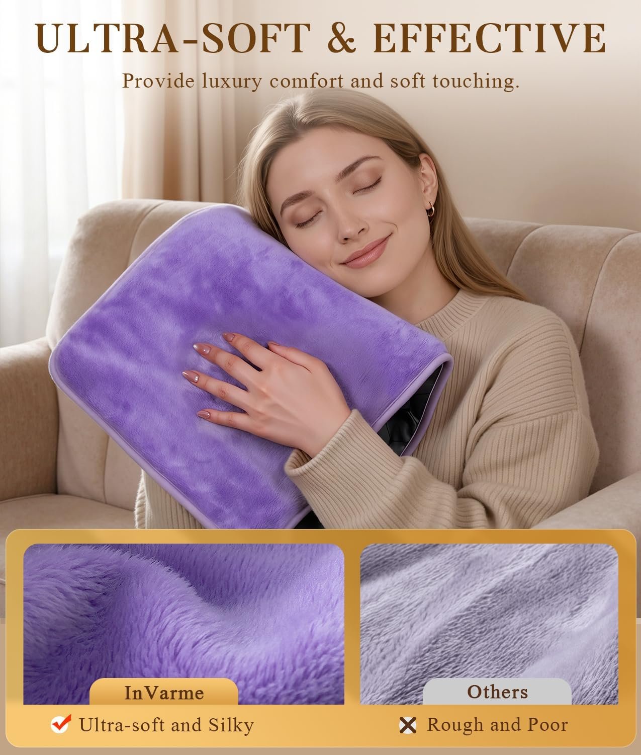LUXURY PLUSH & 2X GRAPHENE, DUAL RELIEF IN EMOTION AND BODY – With patented design, InVarme Heating Pads combine perfectly 2X Graphene heating technology with 5mm ultra-soft plush for gentle and tough relief. When in use, you will experience deep relaxation from the penetrating warmth of far-infrared rays, touching the ultimate softness, to indulge in a uniquely rewarding self-care.