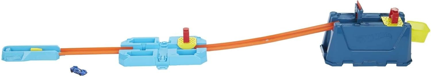 The Hot Wheels Track Builder Stunt Crash Box is the ultimate in track-building sets featuring 18 pieces with three unique stunting and crashing components and more than four different track configurations! It has everything kids need to boost and stunt their way to an epic build or expand an existing build by connecting to other Track Builder sets (sold separately). This awesome gift pack includes one 1:64 scale Hot Wheels car and is ideal for kids aged 6 to 12 years old. Colors and decorations may vary.